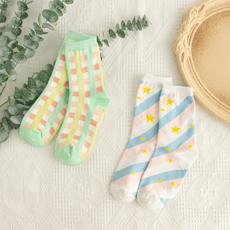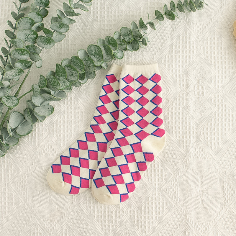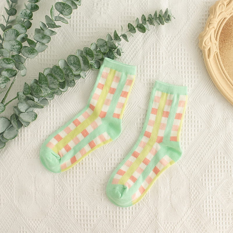 Product Category: Cotton SocksStyle: TrendCraft: JacquardFunction: breathable, shaping, sweat-absorbing, deodorant, anti-frictionPattern: gridThickness: MediumApplicable gender: female