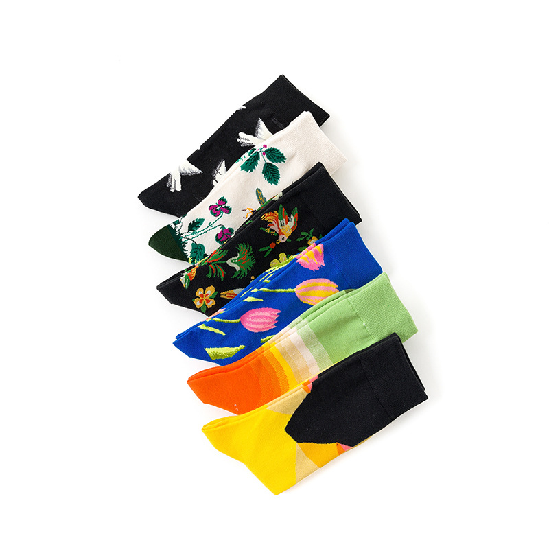 Style Literary Color Happy Middle And High Tube Niche Female Tide Calf Cotton Socks