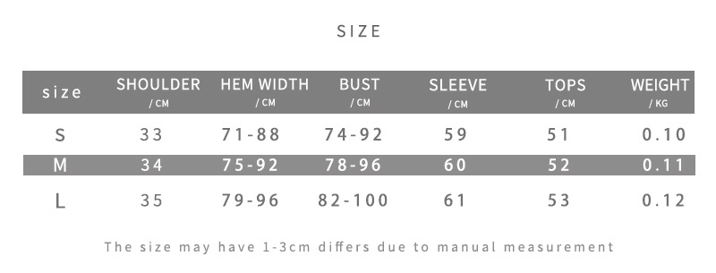1. Asian sizes are 1 to 2 sizes smaller than European and American people. Choose the larger size if your size between two sizes. Please allow 2-3cm differences due to manual measurement. 2. Please check the size chart carefully before you buy the item, if you don't know how to choose size, please contact our customer service. 3.As you know, the different computers display colors differently, the color of the actual item may vary slightly from the following images.