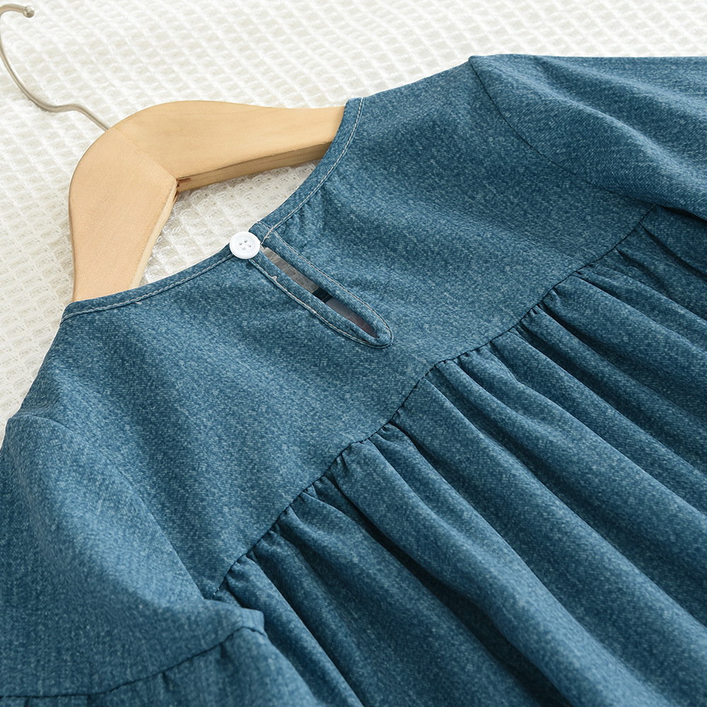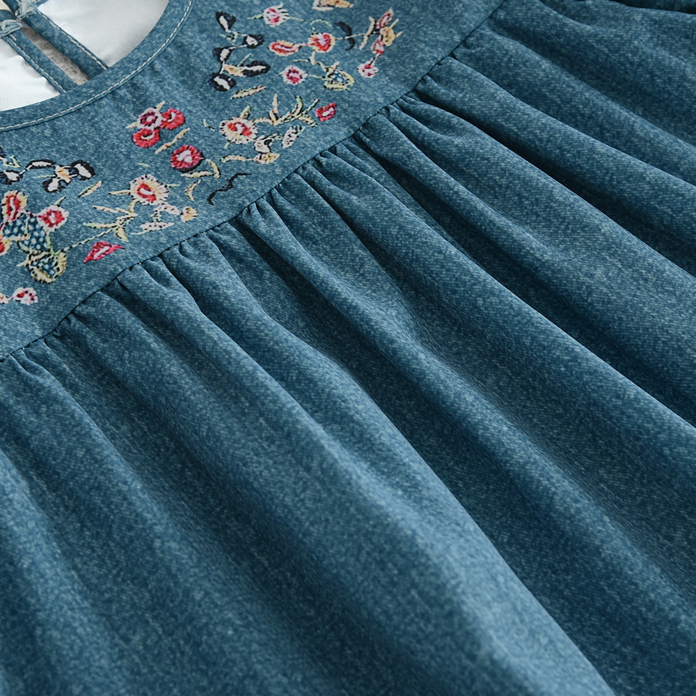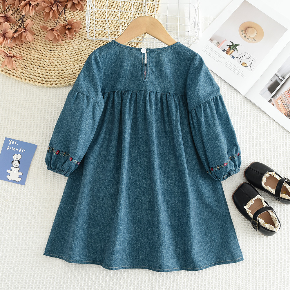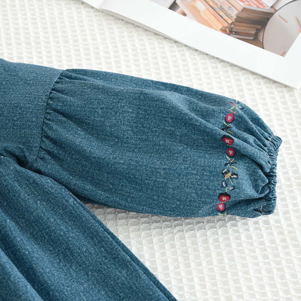 Product information: Pattern: Flowers Color: blue Main fabric composition: Polyester Fiber Suitable height: 2-3Y/100, 4Y/110, 5Y/120, 6Y/130, 7Y/140 Style: long sleeve
