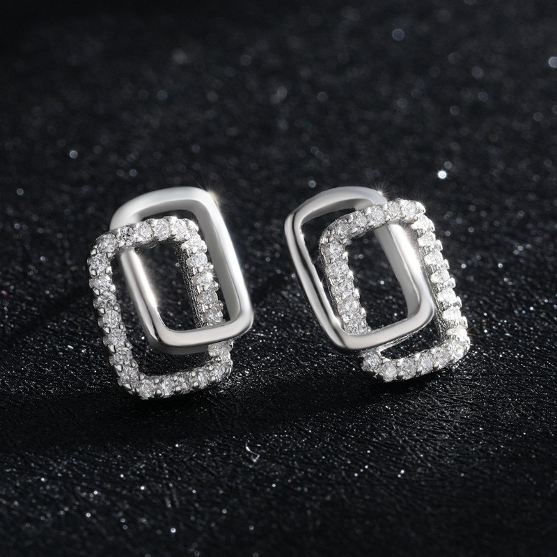 Material: silverProcessing process: electroplatingType: EarringsModeling: GeometryEmbedded material: 925 sterling silver with gemsQuality of precious metal: 1.8 gramsColor: silver