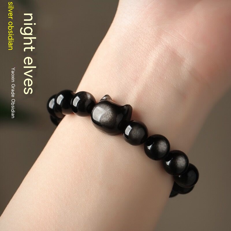 Product information:Type: Bracelet Treatment Process: Polishing Color: Silver style 8mm, gold style 8mm Material: Obsidian Size: 10mm Style: fashion style