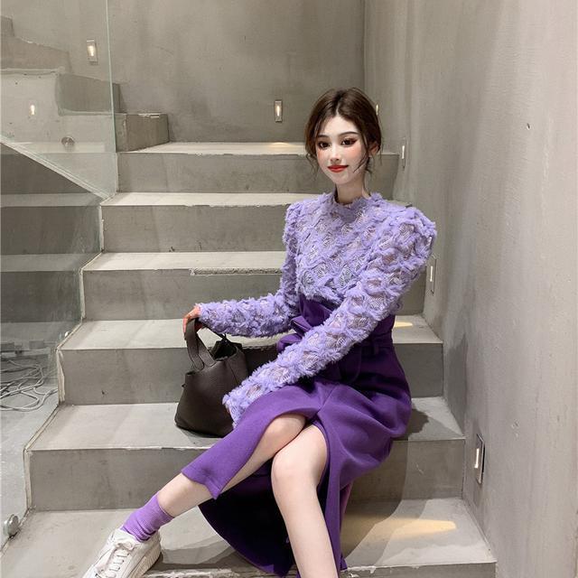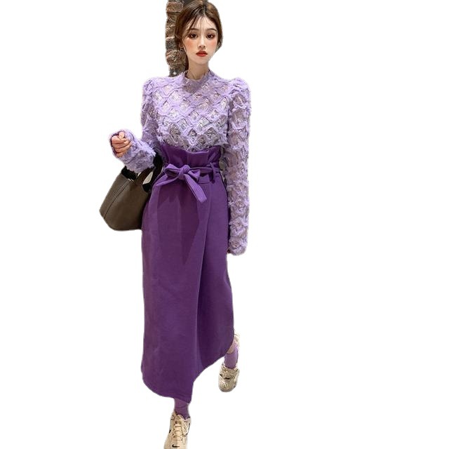 Color: single purple blouse, single purple skirt