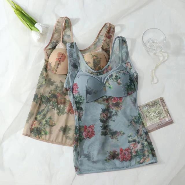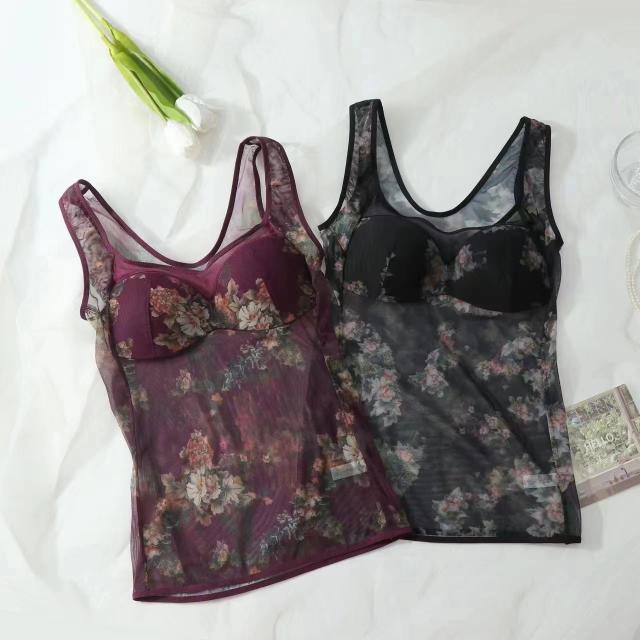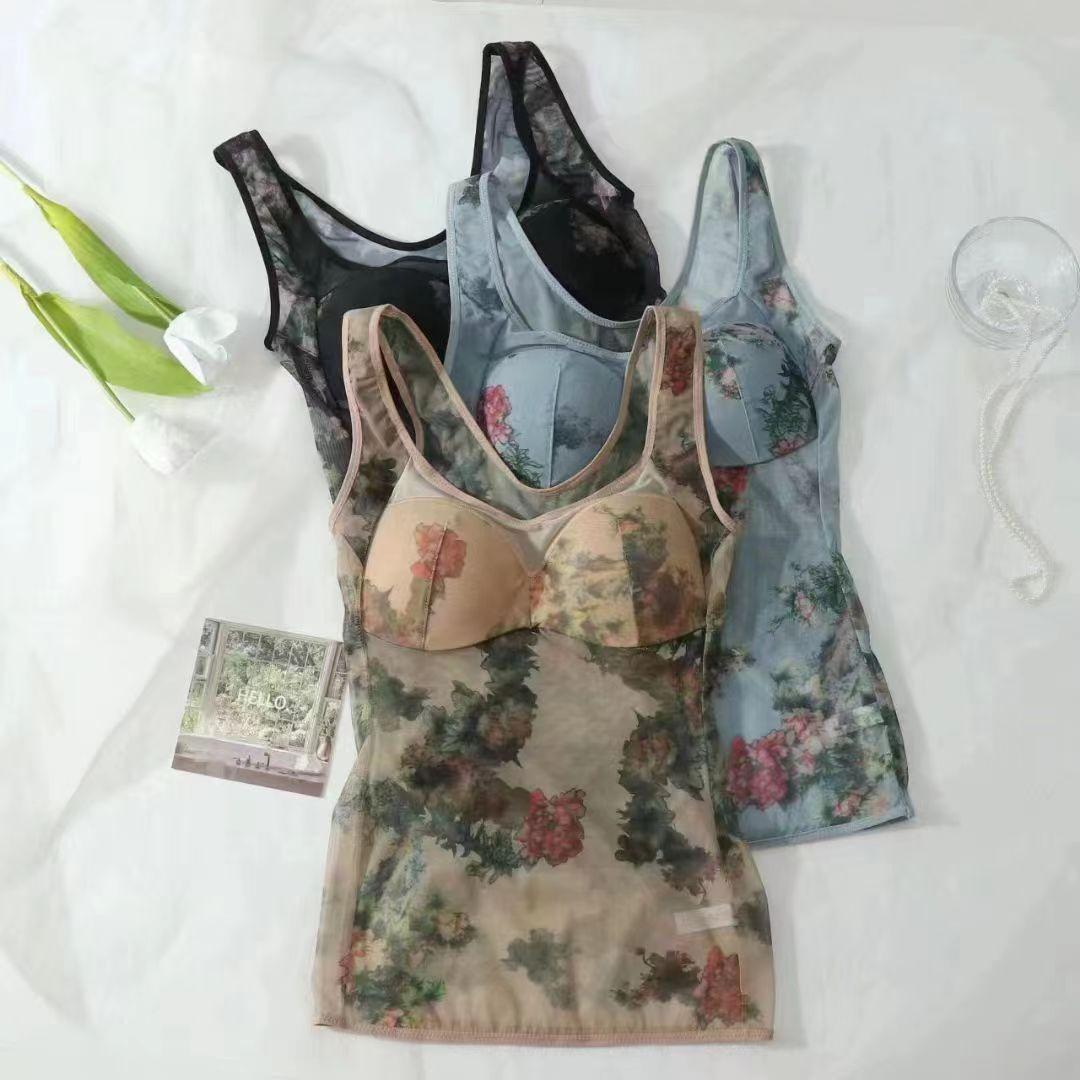 Product information:Fabric name: Spandex Color: skin-color flowers, black flower, gray blue flower, khaki purple pattern Main fabric composition: Spandex Style: Sling