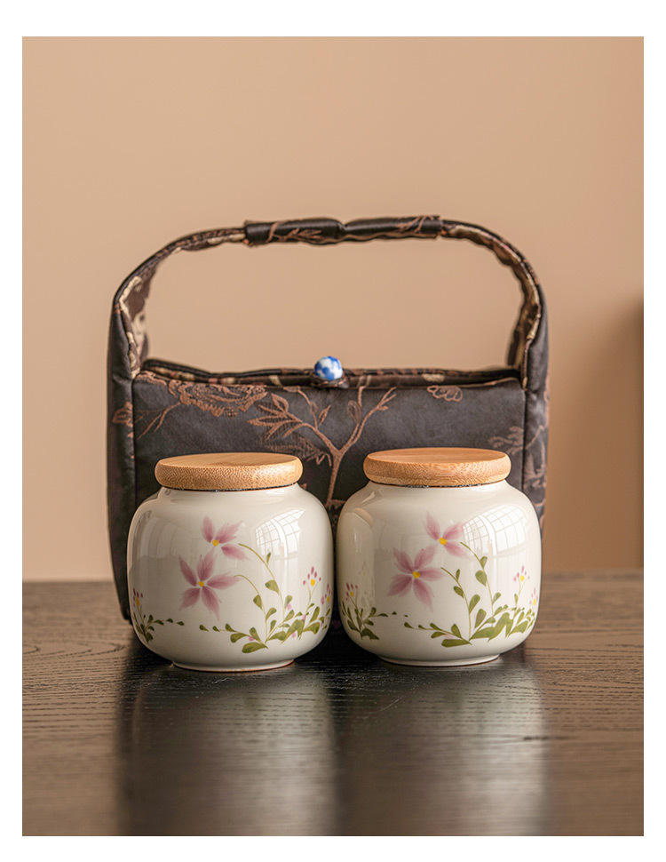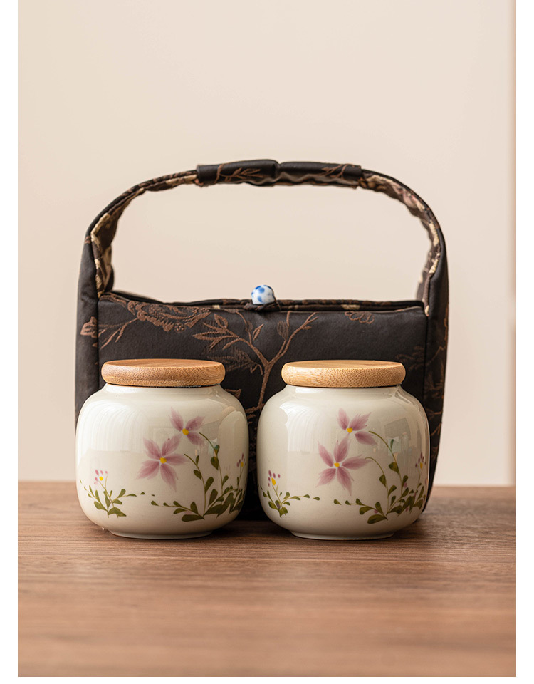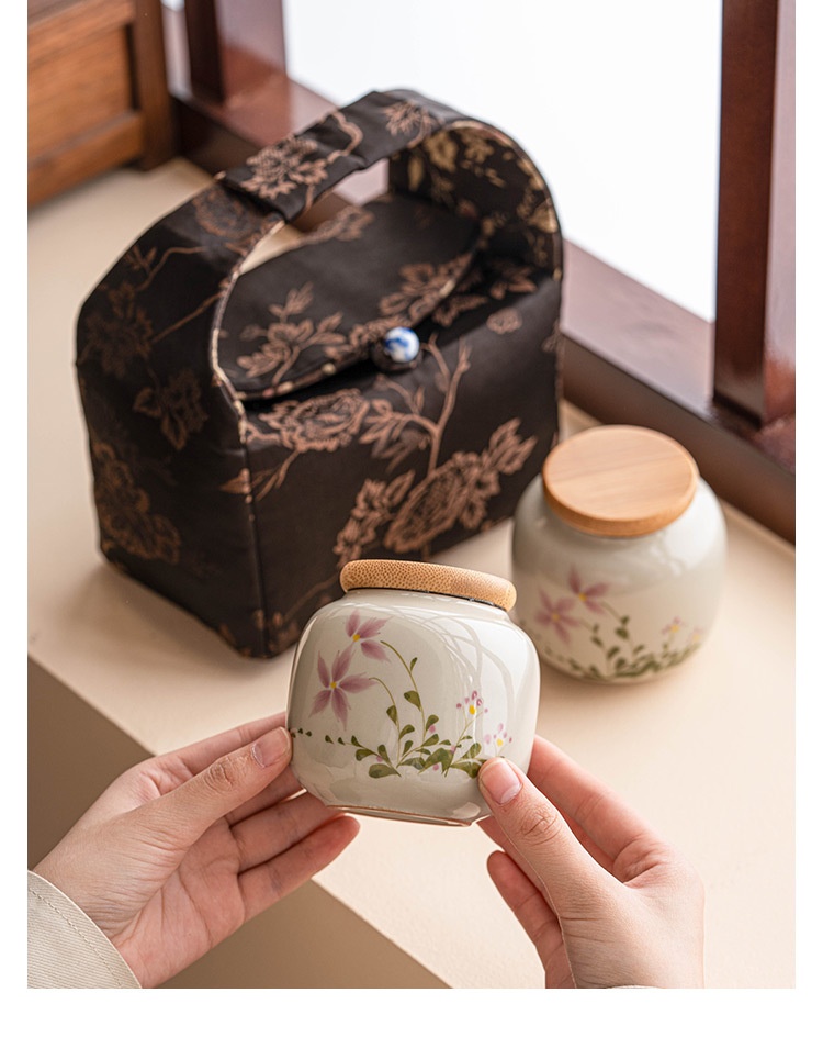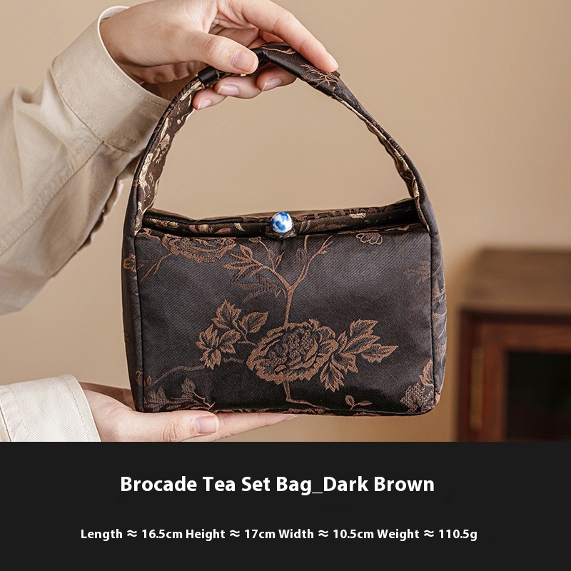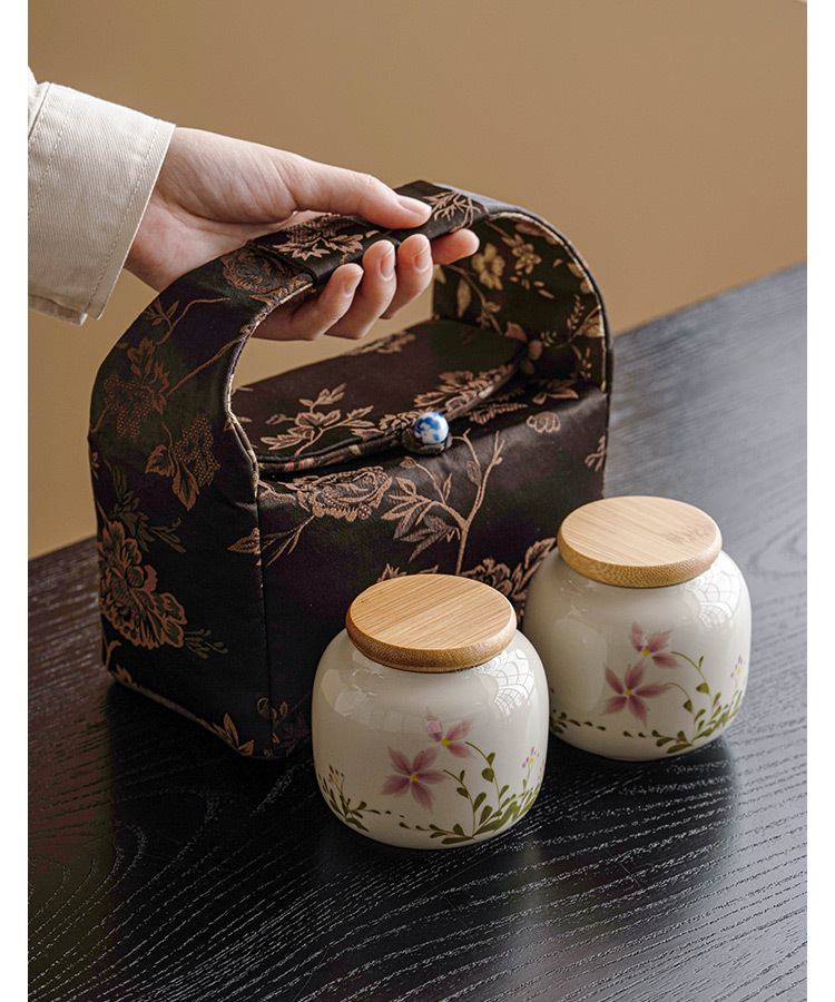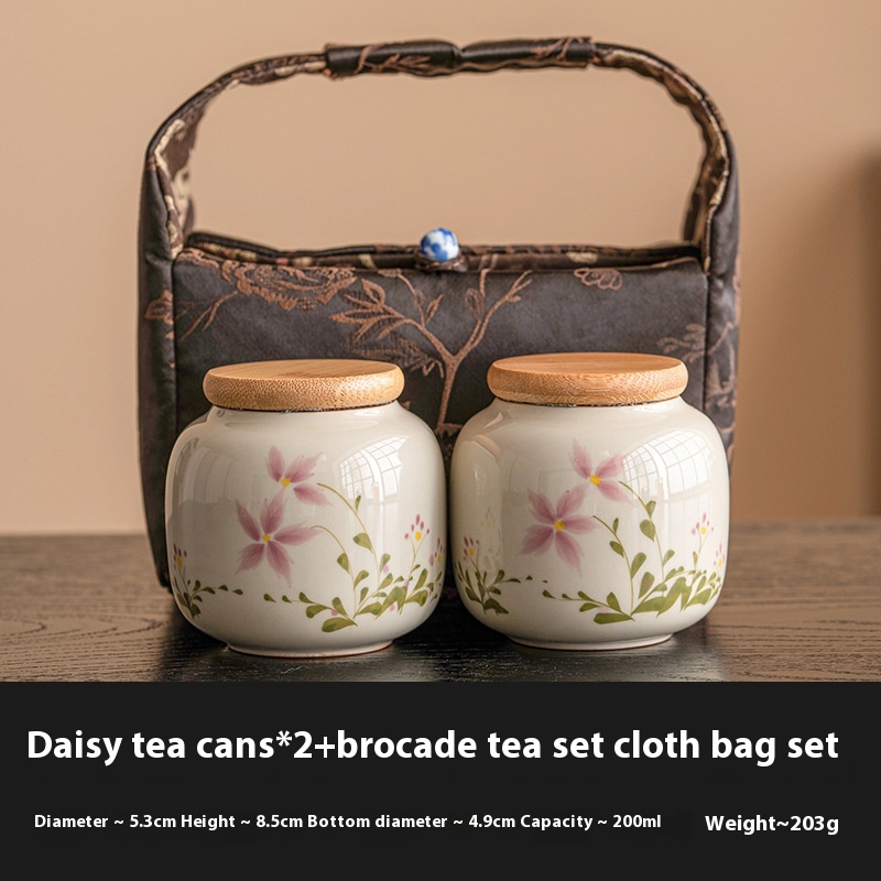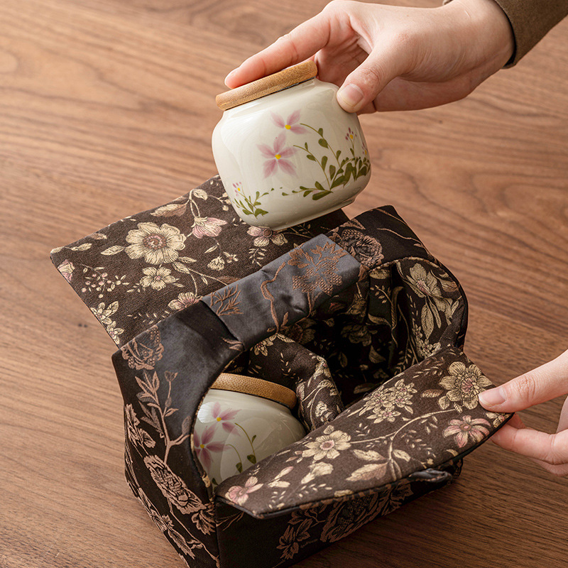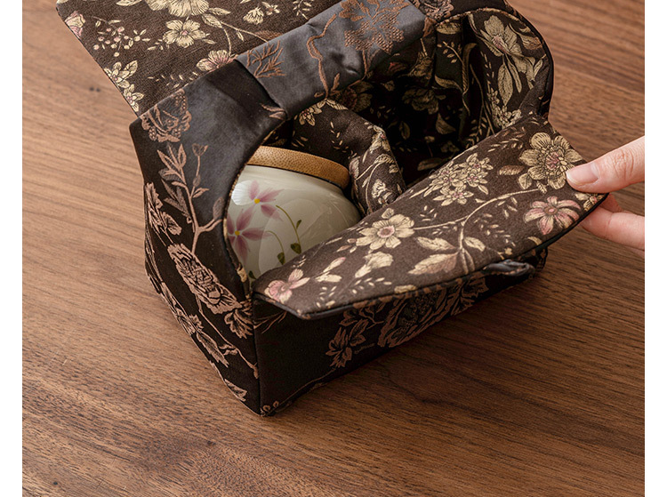Color: pure hand drawing little Daisy_Small ternary tea pot, brocade tea set cloth bag_dark brown little Daisy tea pot * 2 brocade tea set cloth bag sets