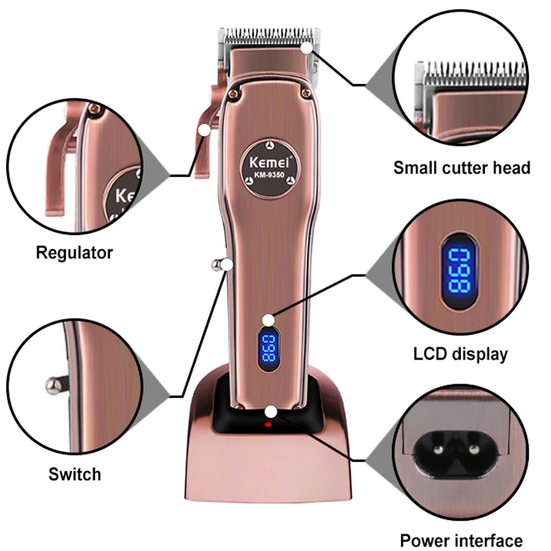 Product information:Color: Rose GoldType: BarberBattery specification: 2200mAPower supply: plug-in chargingSwitch: Push type switchVoltage: 3.7VPower: 5WCharging time: 3 hoursUsage time: 300 minutes