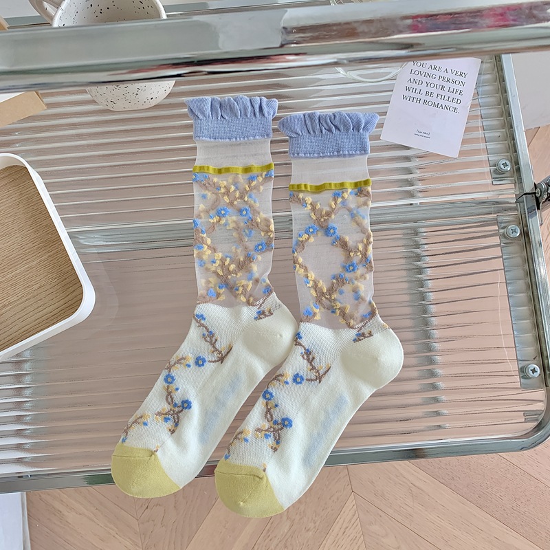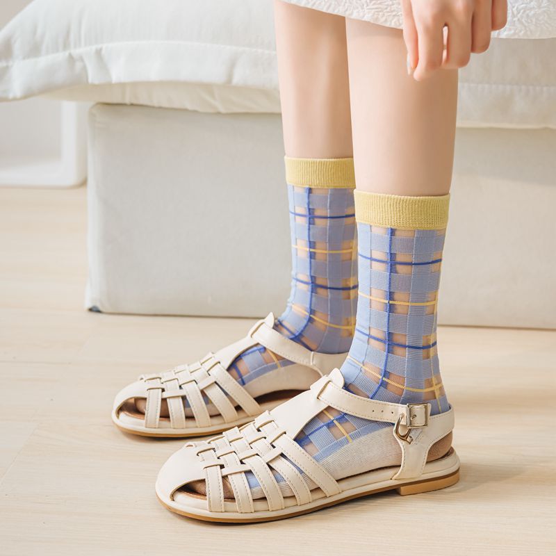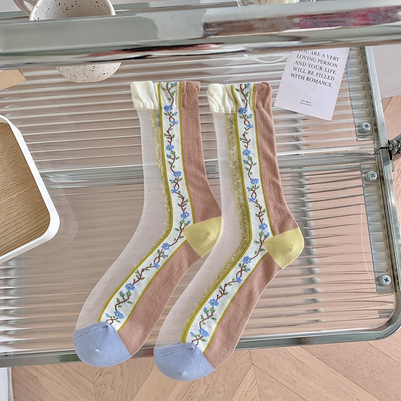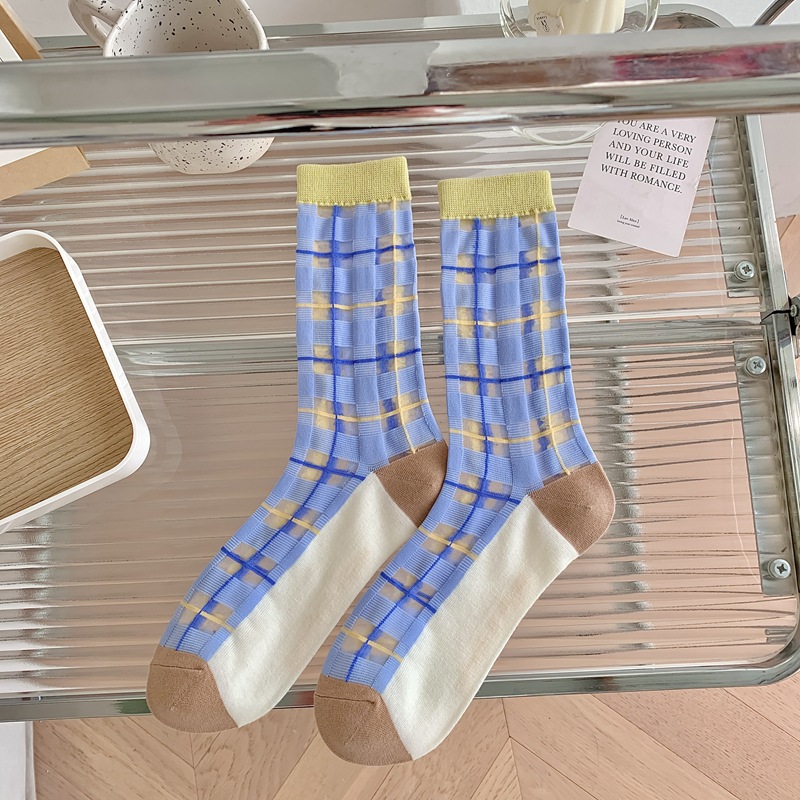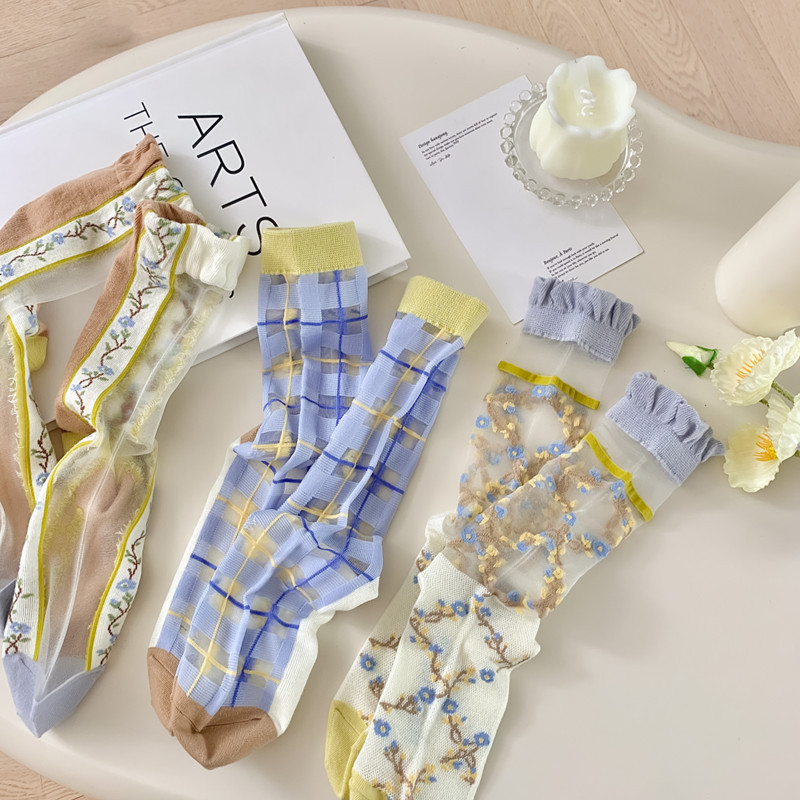 Product information:Fabric: nylonFunction: BreathableStyle: VintagePattern: LacePacking form: cardBarrel height: Middle barrelCraft: MeshColor: Khaki patchwork, blue lace, blue checkSize: Average size
