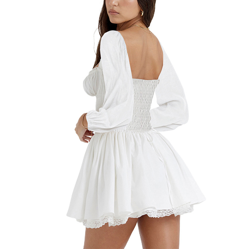 Product information: Color: white, red, black Waist type: elastic waist Size: S,M,L,XL Skirt length: short skirt Main fabric composition: Polyester Sleeve length: long sleeve