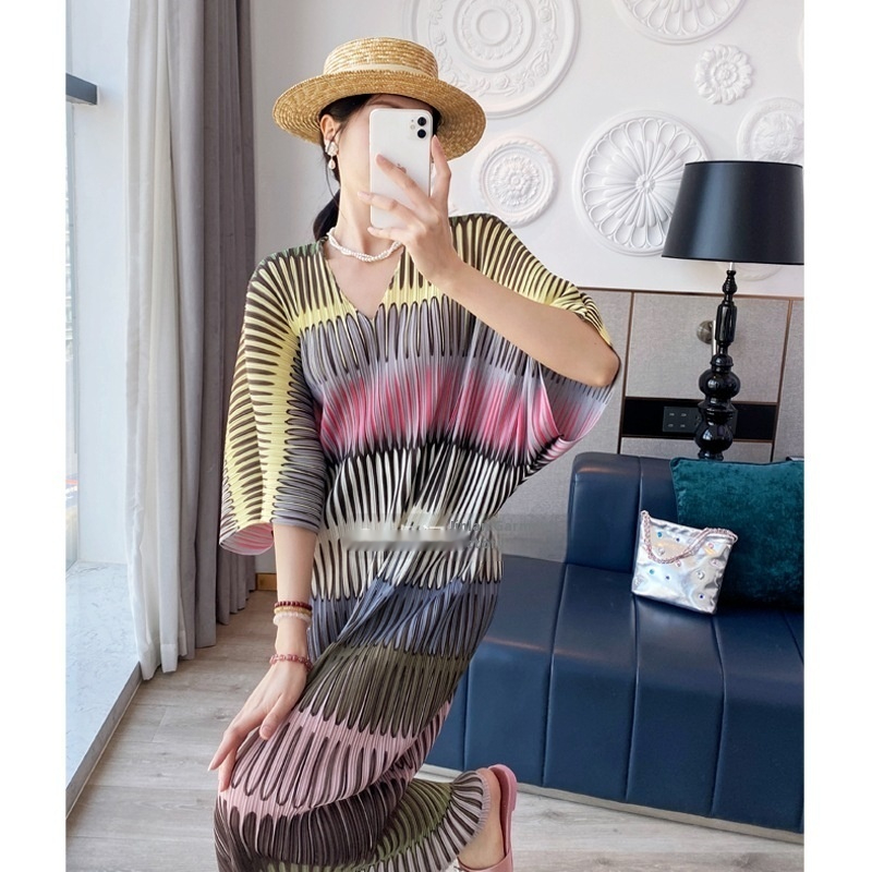 Product information: Fabric name: Polyester Color: Picture color Sleeve type: batwing sleeve Size: free size Style type: Japanese and Korean casual Skirt length: long skirt Sleeve length: short sleeve Skirt Category: Dress Style: casual style