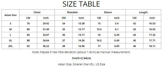1. Asian sizes are 1 to 2 sizes smaller than European and American people. Choose the larger size if your size between two sizes. Please allow 2-3cm differences due to manual measurement. 2. Please check the size chart carefully before you buy the item, if you don't know how to choose size, please contact our customer service. 3.As you know, the different computers display colors differently, the color of the actual item may vary slightly from the following images.