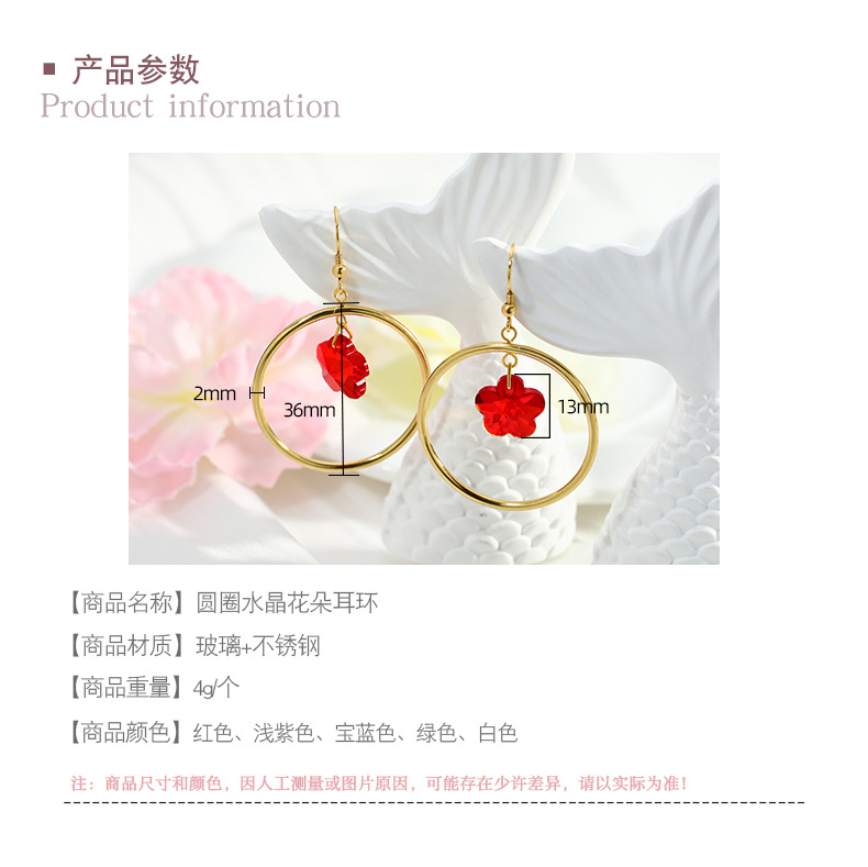 Color: round crystal flower earrings/metal ear hook, round crystal flower earrings/spring ear clip