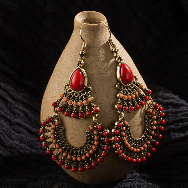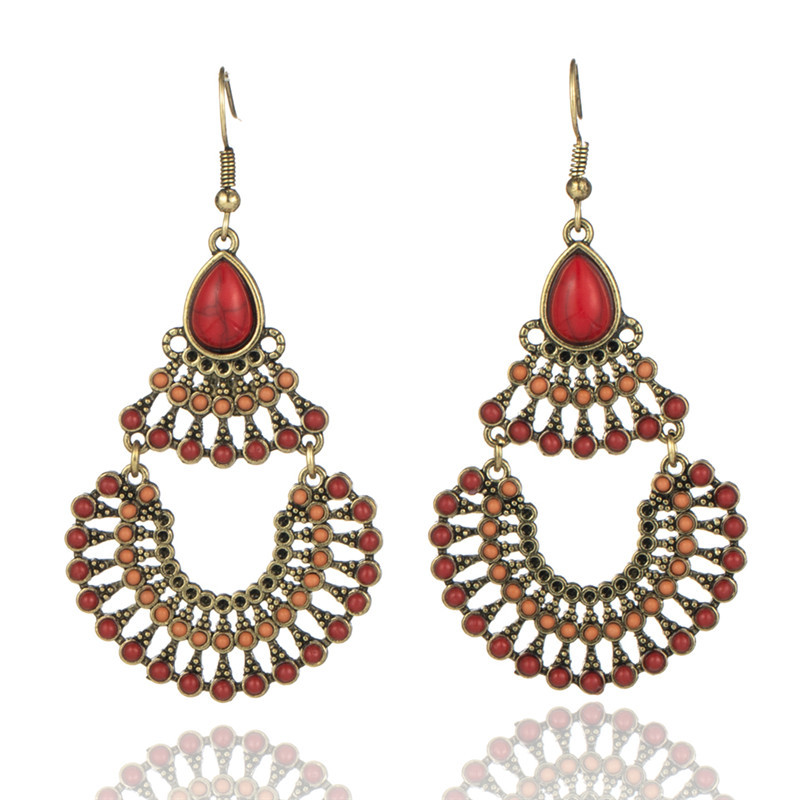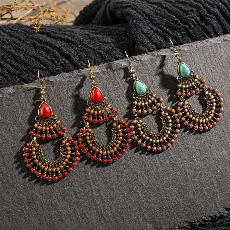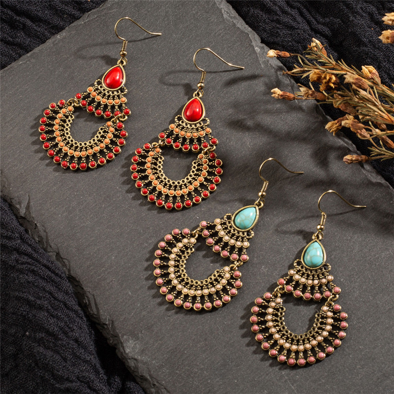 Geometric Combination Oval Inlaid Rice Jewelry Stone Earrings