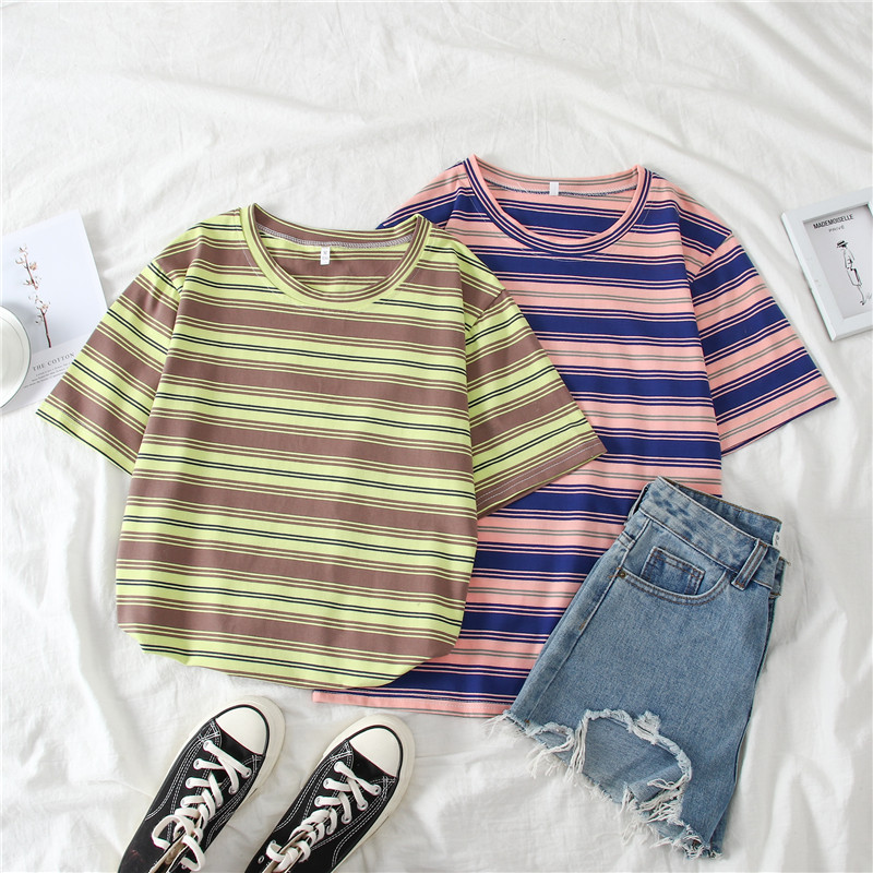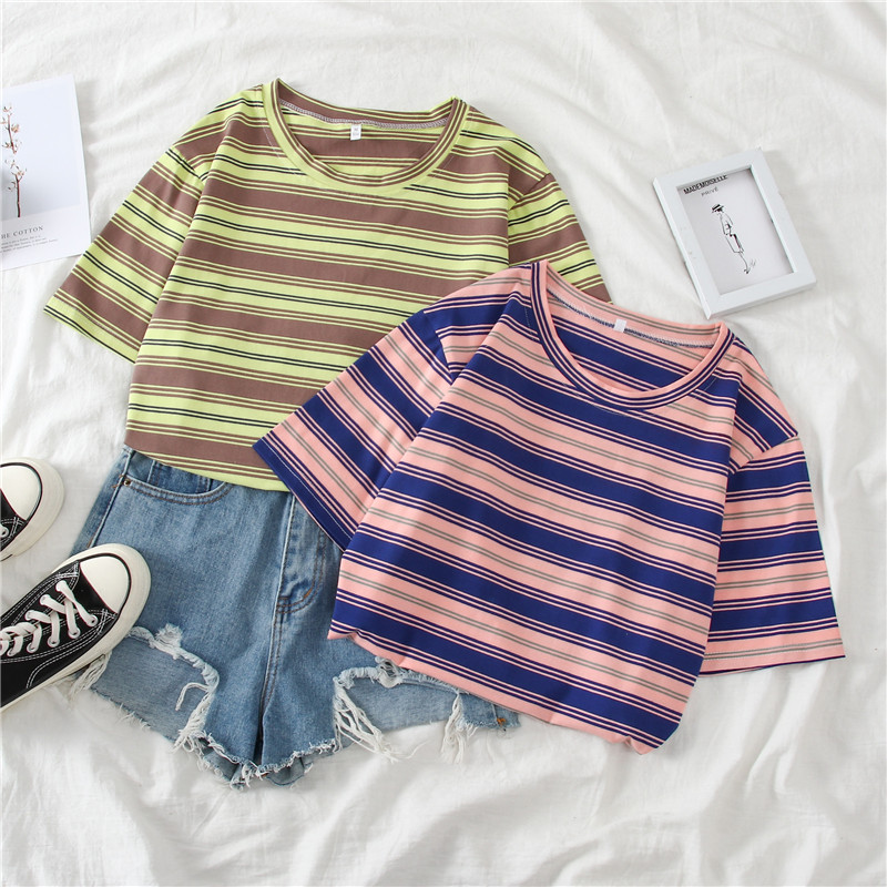 Pattern: gray-green stripes and blue-pink stripes