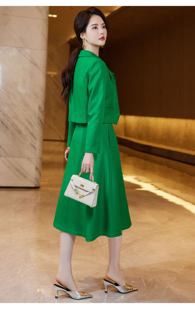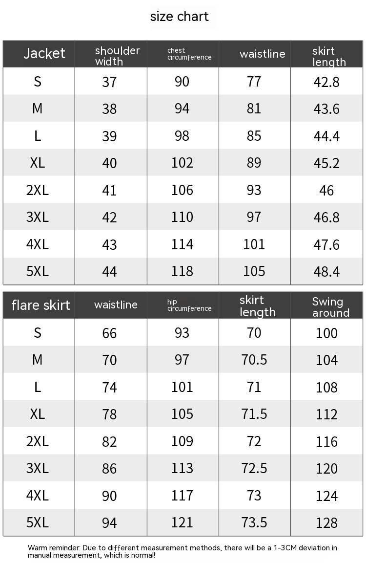 Color: single black suit, single yellow suit, single green suit, a blue suit, yellow suit yellow flare skirt, green suit Green flare skirt, black suit Black flare skirt, blue suit blue flare skirt