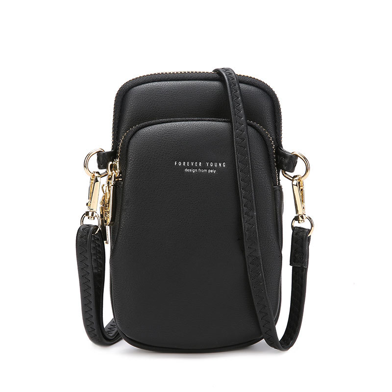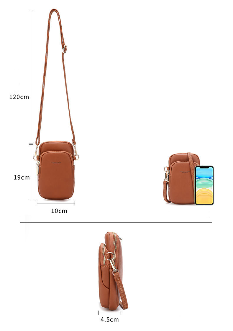 Name: mobile phone bagLining: PolyesterNet weight: 0.2kgShoulder strap: 120cmFunction: CrossbodyInternal structure: multilayer zipperFabric: pu leather.Color: five colors available