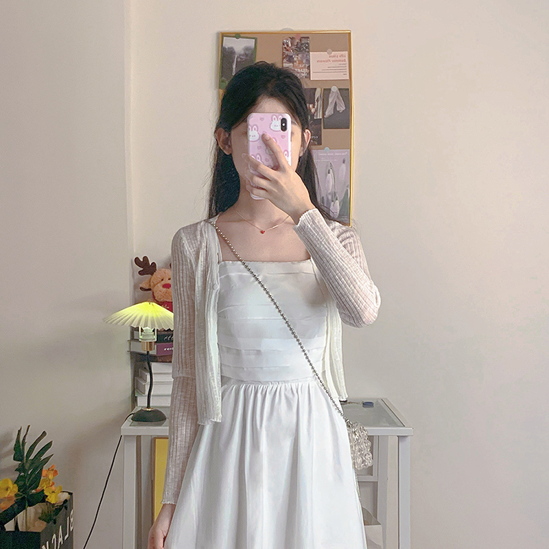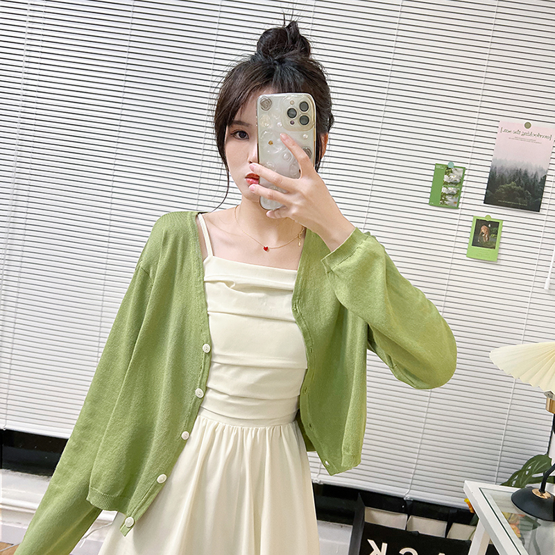 Product Information:Pattern: Solid colorStyle: CommutingCommuting: SimpleColor: Green cardigan, ice blue cardigan, white moonlight cardigan, white lapel cardigan, apricot cardiganSize information:Size: even sizePacking list:Top X1PCS