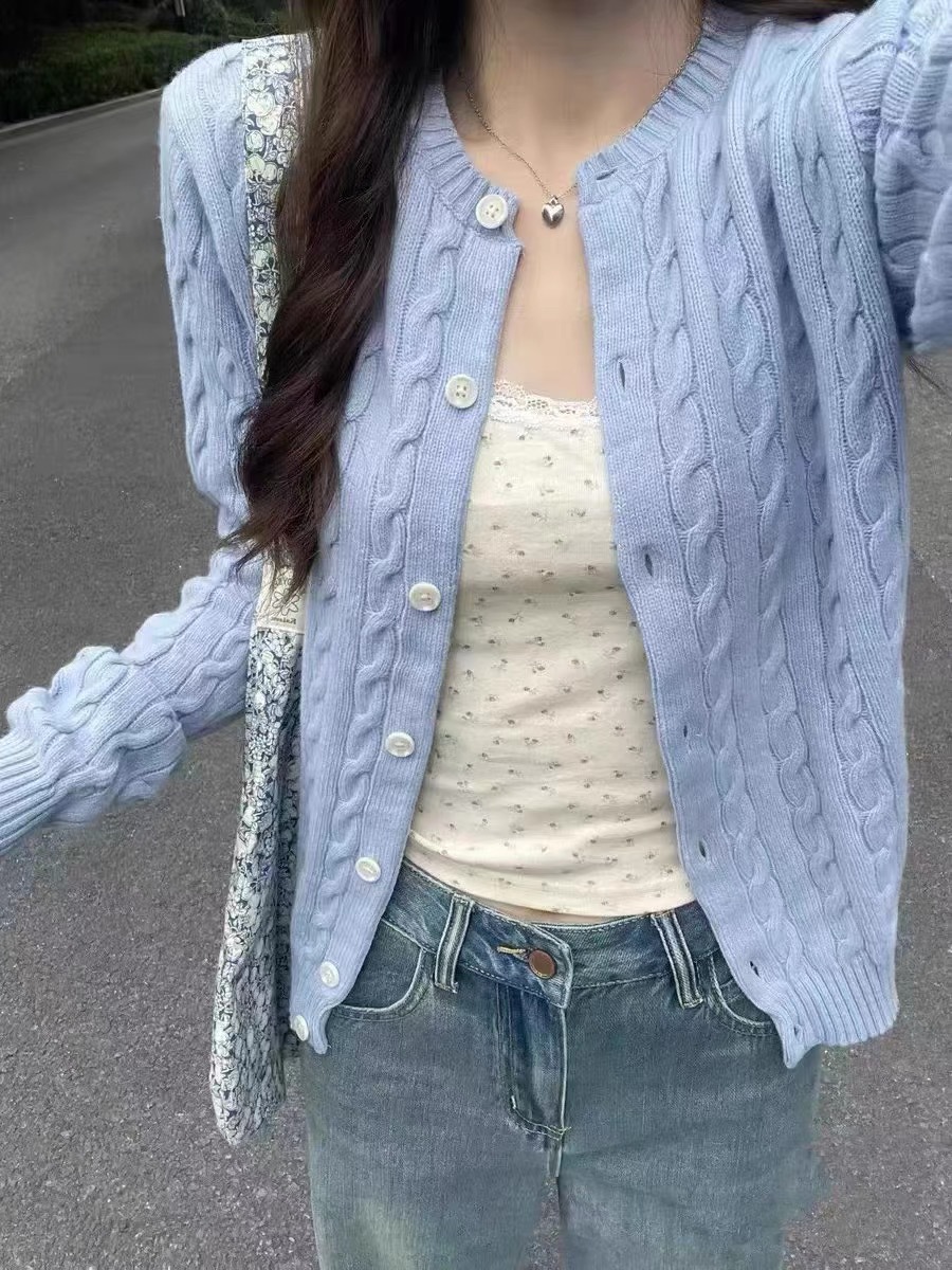 Product information:Color: blue, navy blueSleeve type: regular sleeveSize: free sizeApplicable Gender: FemaleStyle type: fresh and sweetSleeve length: long sleeveStyle: CardiganStyle: girly style