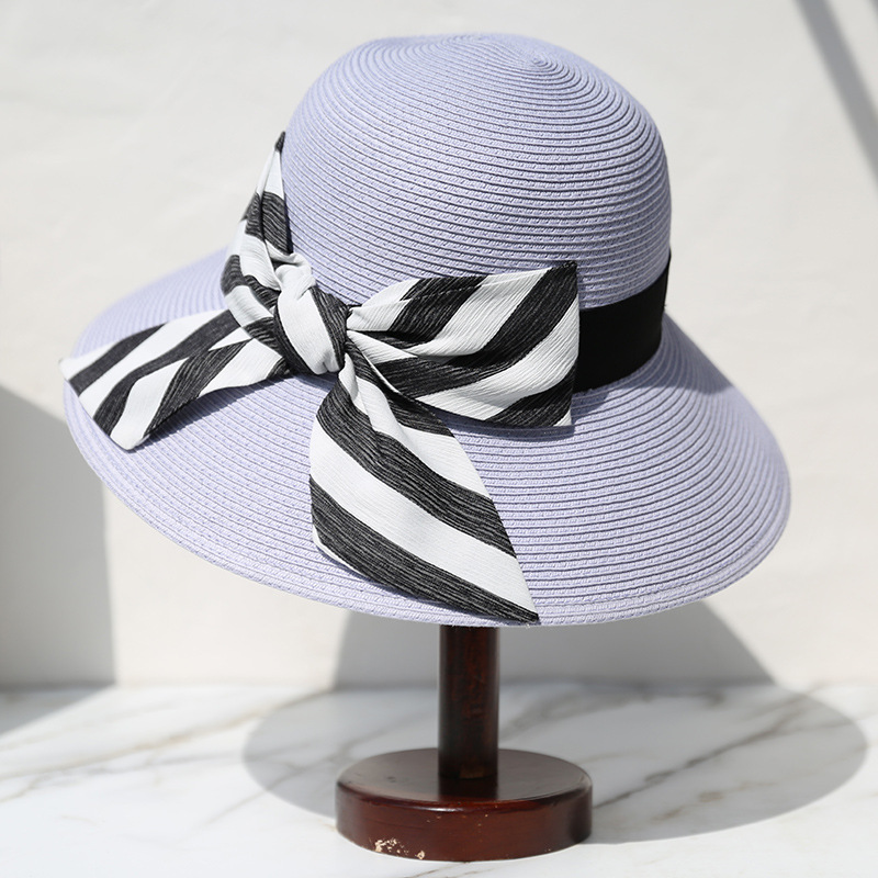 Product information :Material: StrawStyle: all-matchWeaving method: satinHat style: domeBrim style: wide brimColor: ivory white, light purple, natural color, mixed coffee colorSize Information:Size: M (55-57cm)Packing list:Hat*1