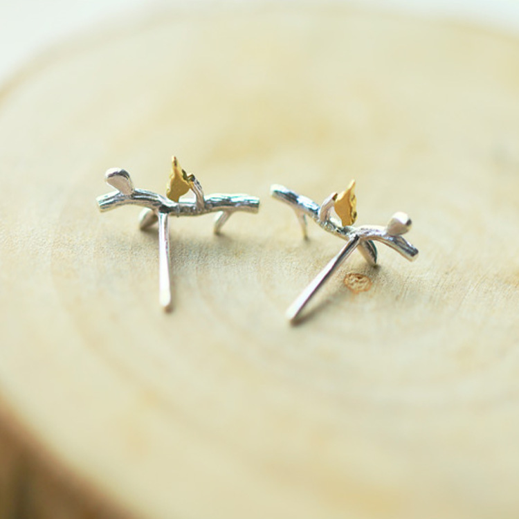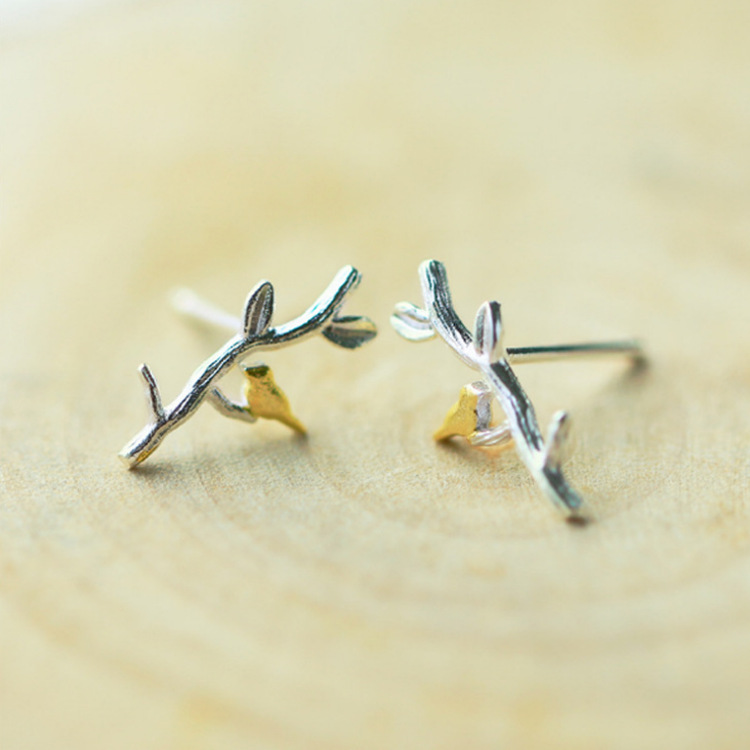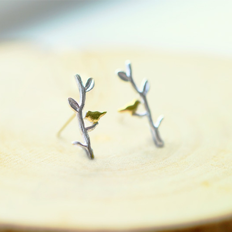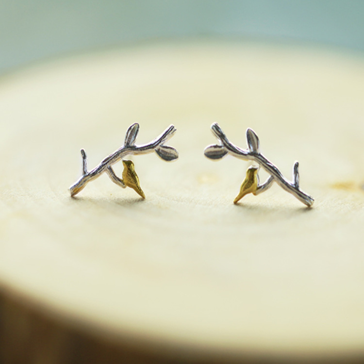 Simple branch bird earrings