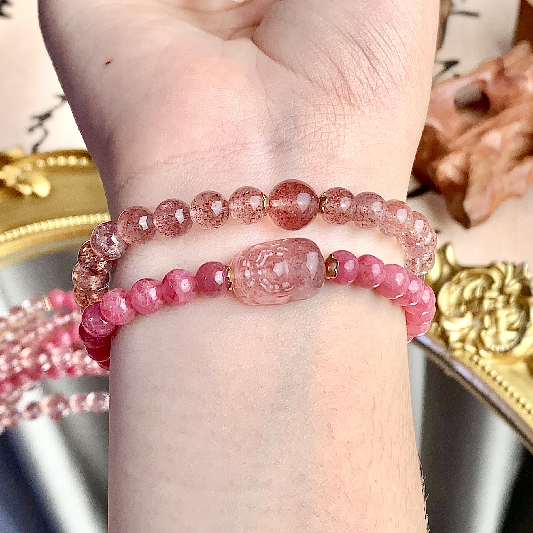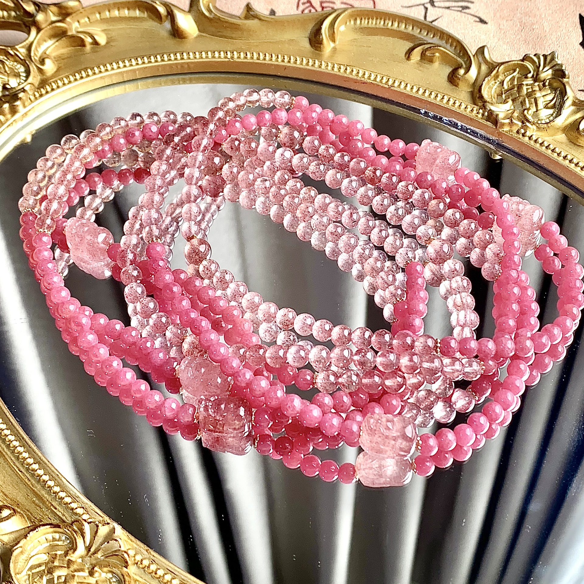 Natural Crystal Bracelet Strawberry Quartz Multi-circle DIY Special-interest Design Crystal Bracelet Ornament