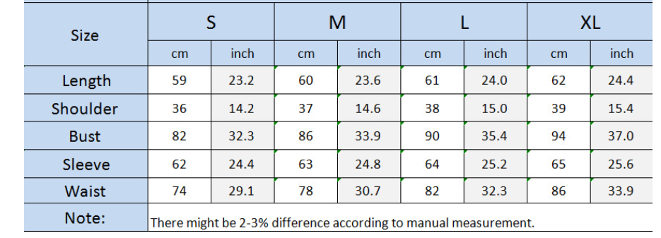 1. Asian sizes are 1 to 2 sizes smaller than European and American people. Choose the larger size if your size between two sizes. Please allow 2-3cm differences due to manual measurement.
