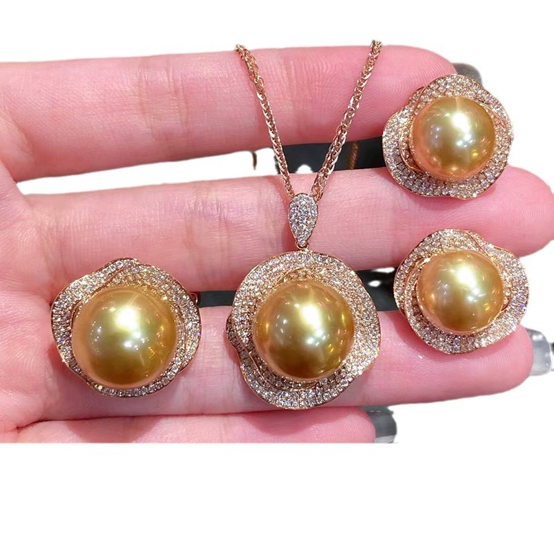 Product information:Treatment Process: inlaid zircon Color: necklace-gold, silver needle-gold, ring-Gold Applicable population: Female Material: Pearl Shape: Flower, geometry Style: Casual