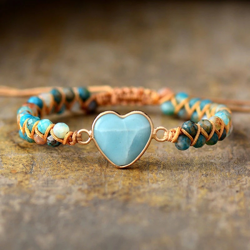 Color: A: natural blue stone bracelet, B: natural Amazon stone bracelet