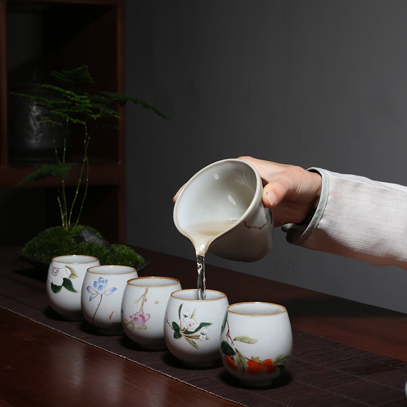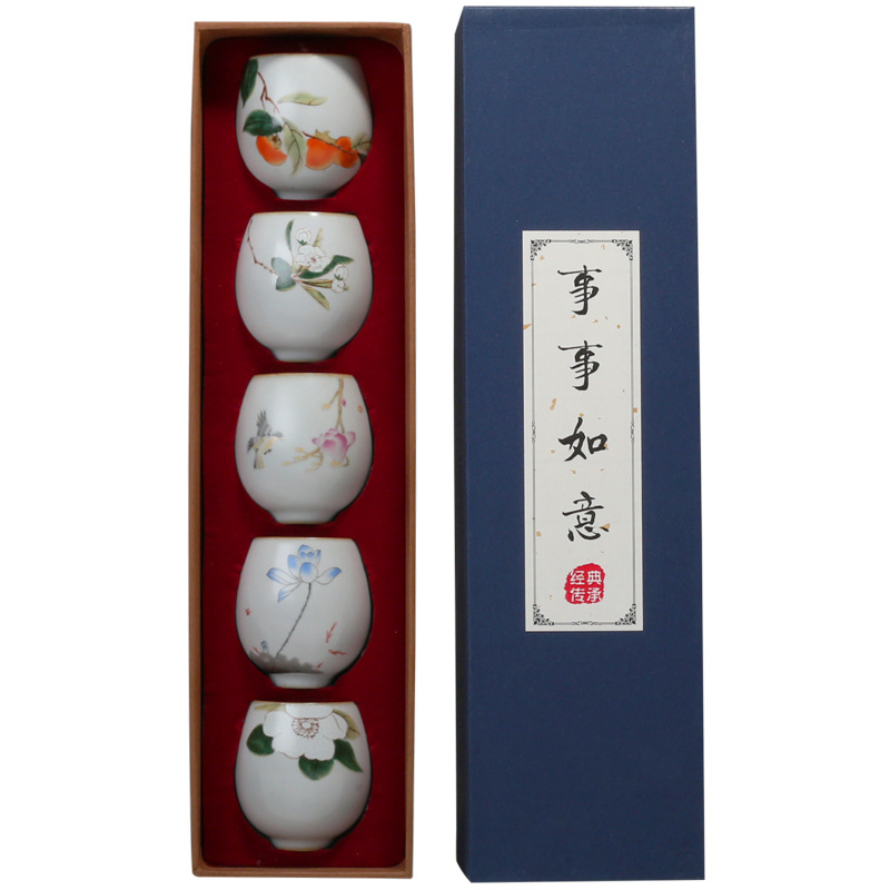 Colour:A1A: A set of five Yuebai Ru Kiln round cupsA2A: A set of five Yuebai Ru Kiln open cups