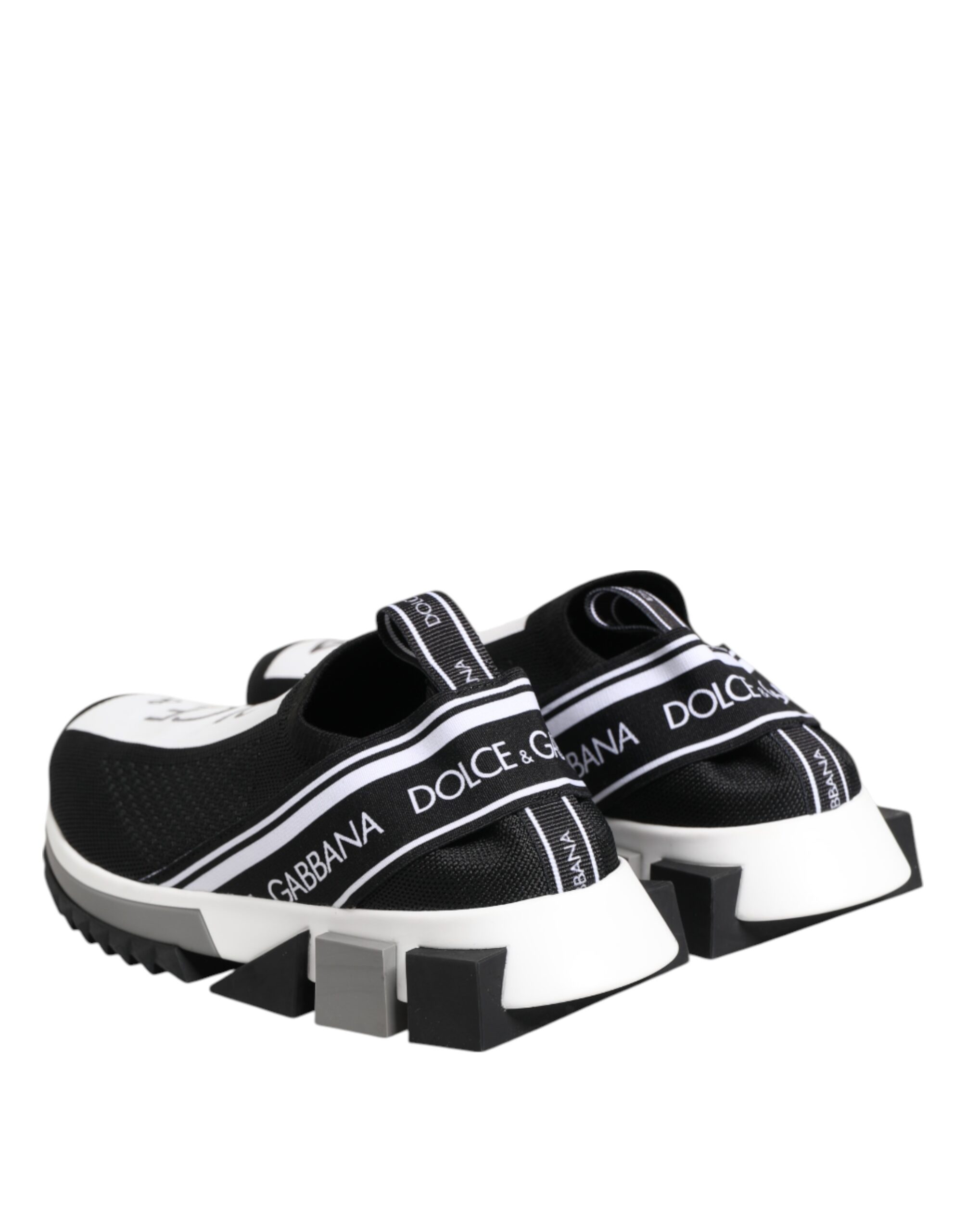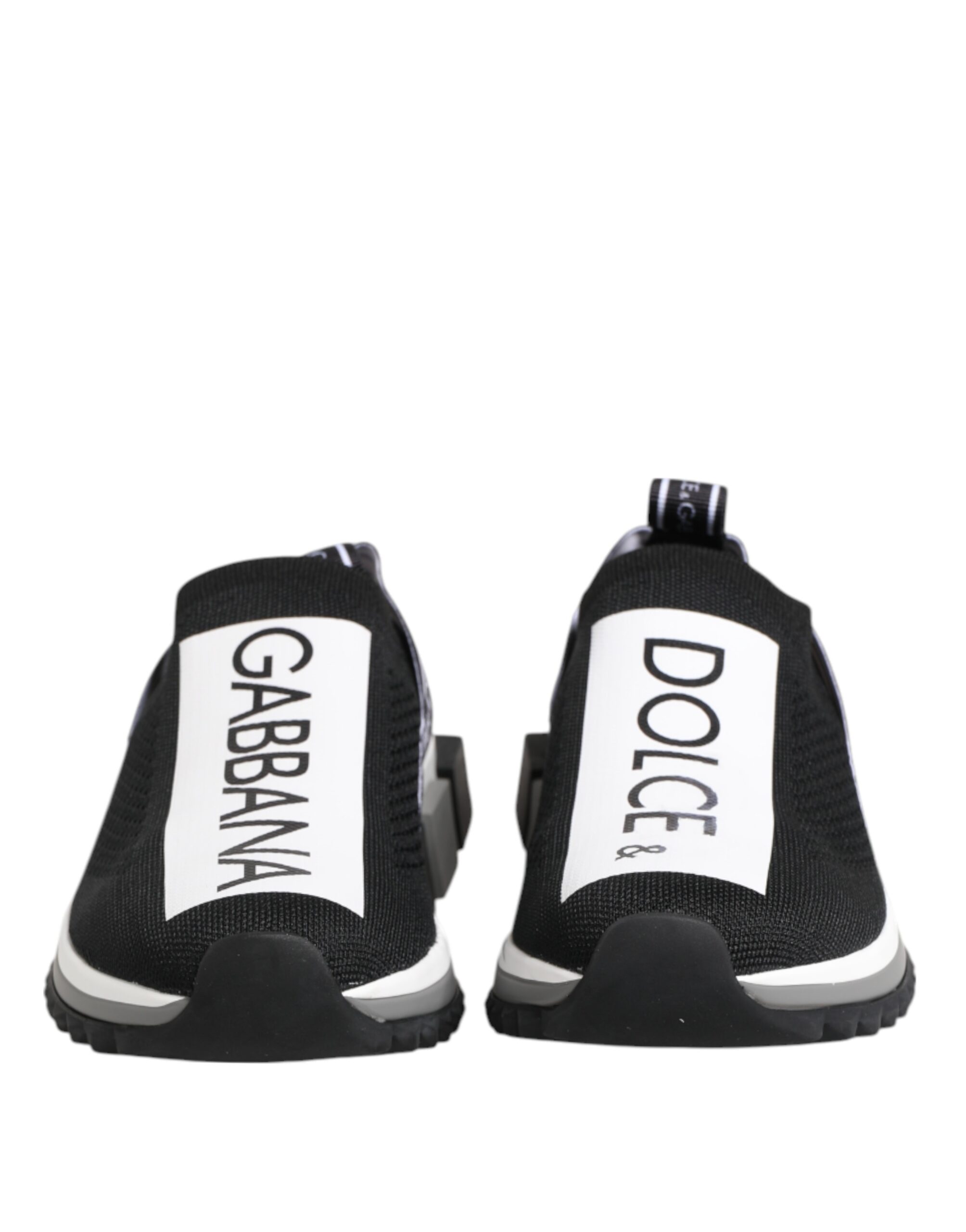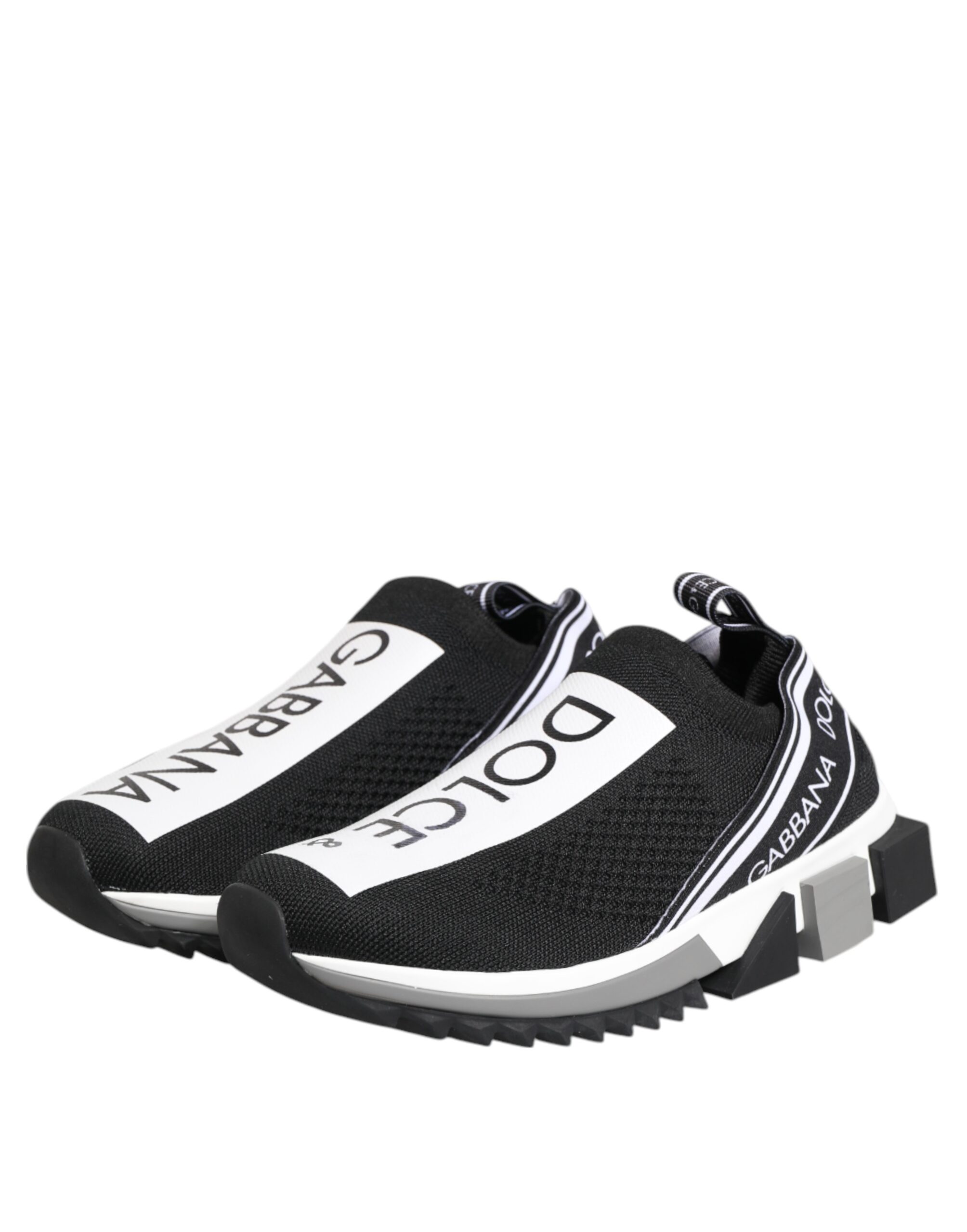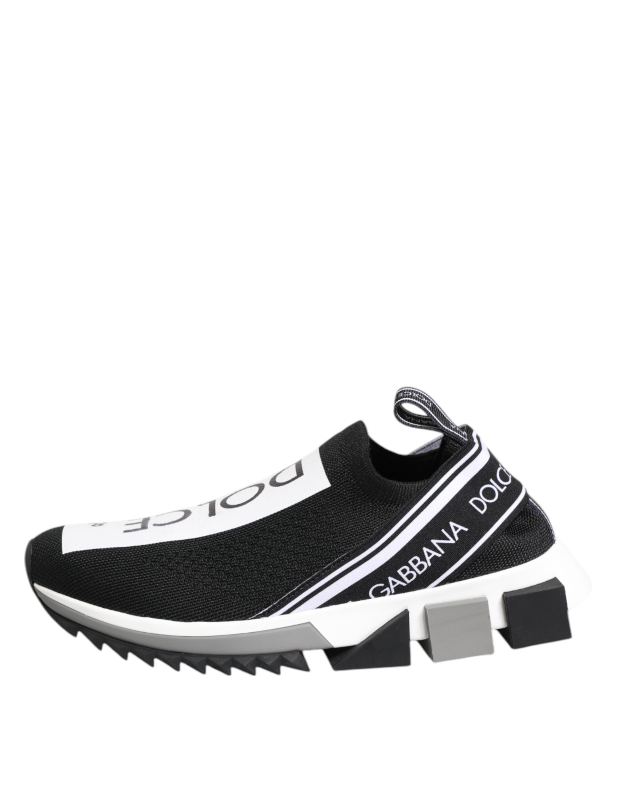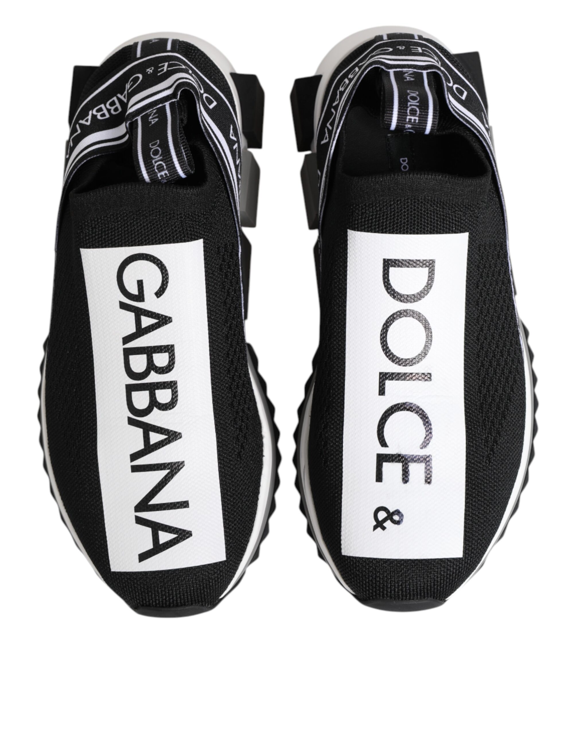 Gorgeous brand new with tags, 100% Authentic Dolce & Gabbana Black and white ‘Sorrento’ sock sneakers. Decorated with a logo print in white and black. Fabric pull strap sewn-in at the back. Black decorative rubber sole.