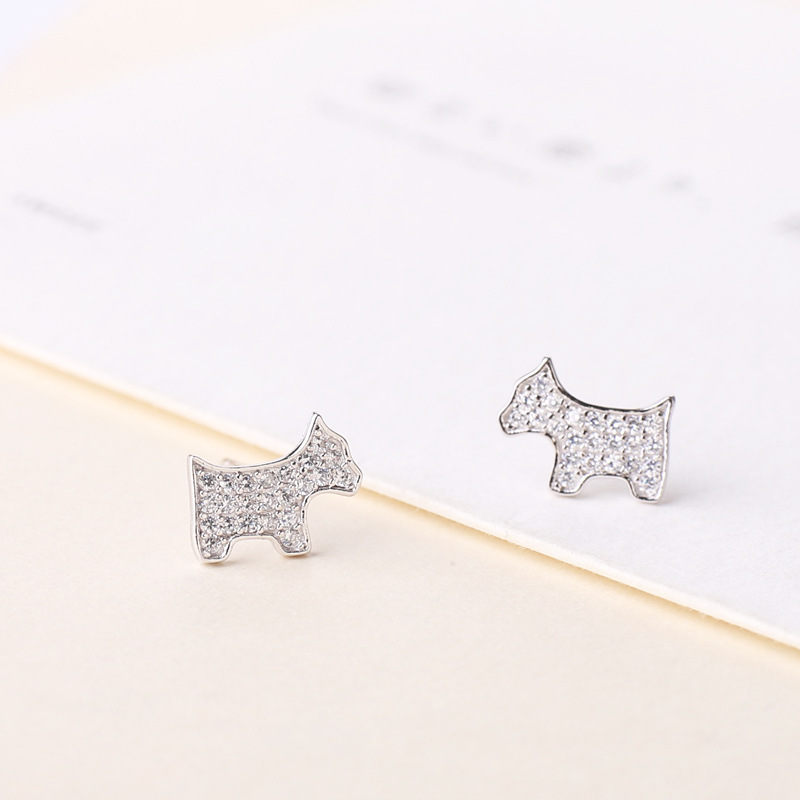 Full Diamond Micro-inlaid Zircon Dog Earrings Personality and Creativity