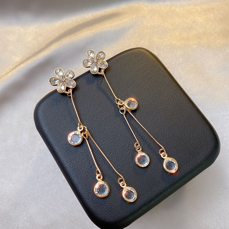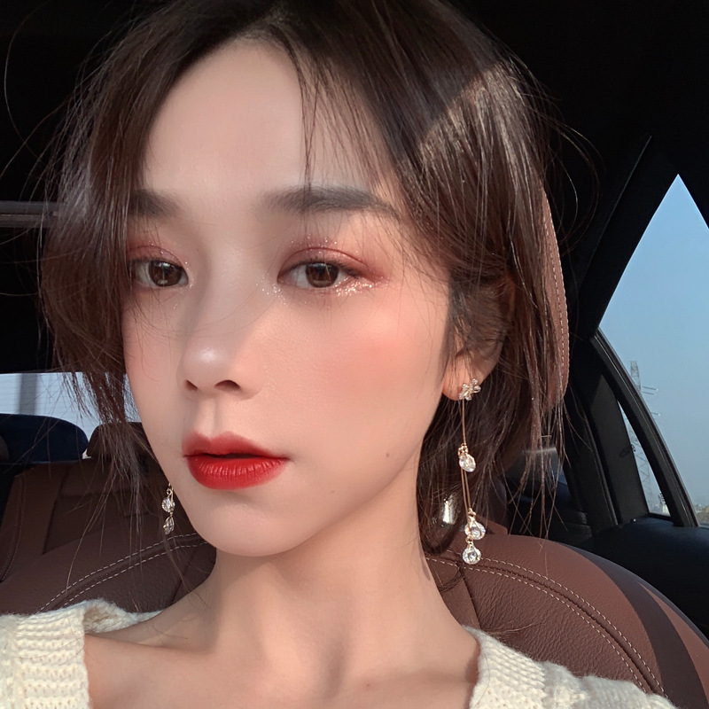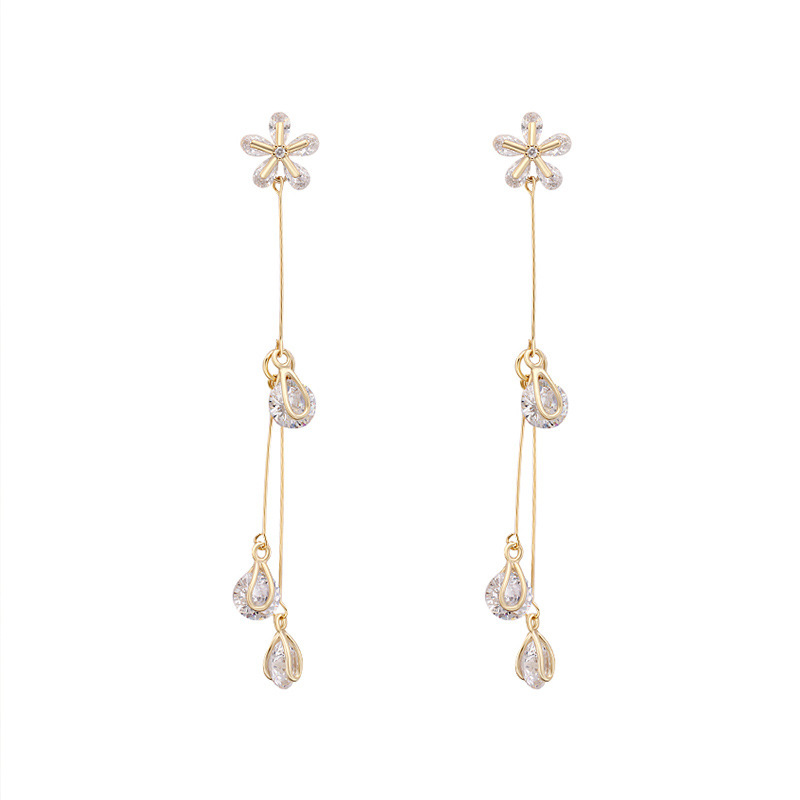 Temperament Long Angel Tears Zircon Tassel Earrings