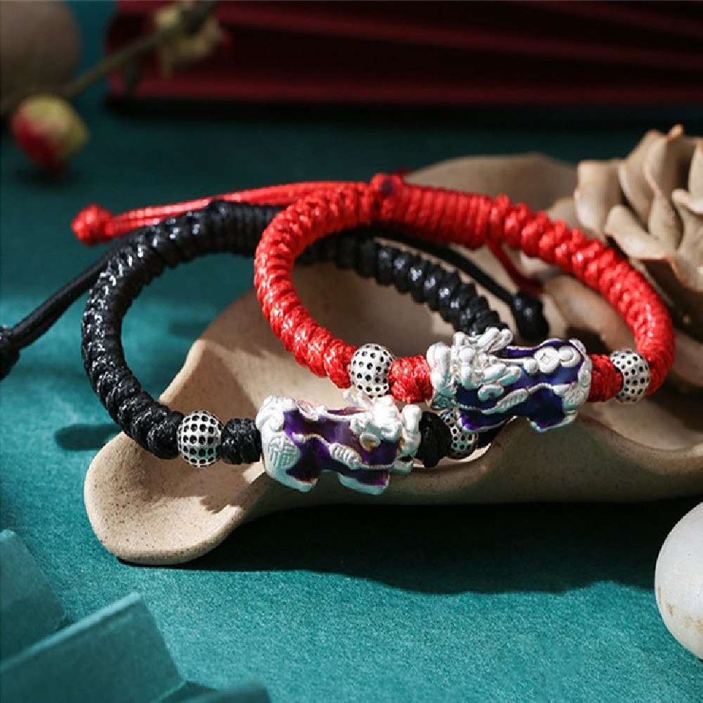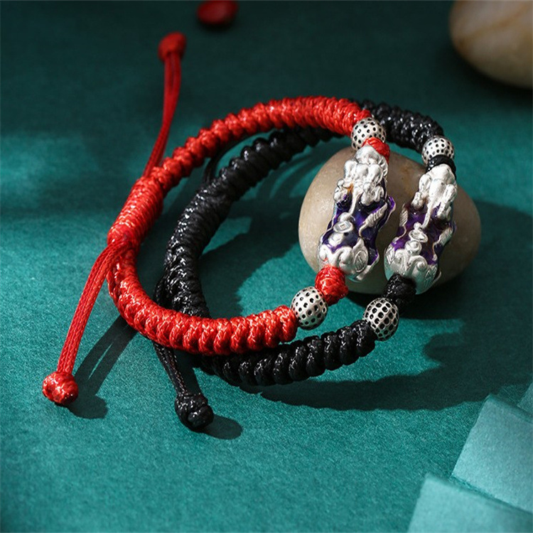 Style:ExoticMaterial: SilverTreatment process: Dripping oilType: BraceletStyle: UnisexColor: Red, blackPurity: Pure silverPopular elements: Color matchingSize circumference about: 16cm -25cm