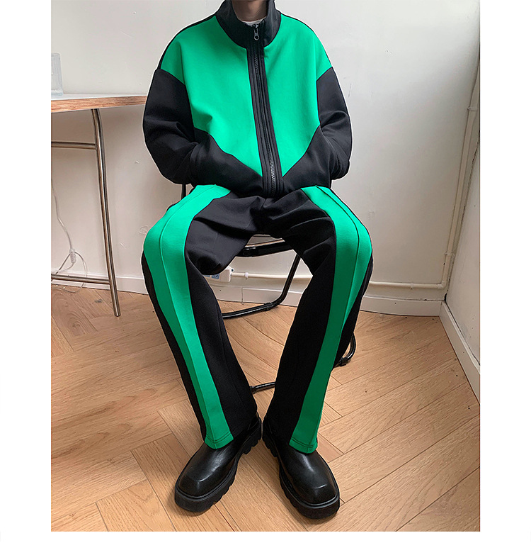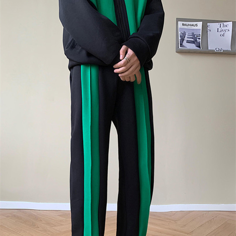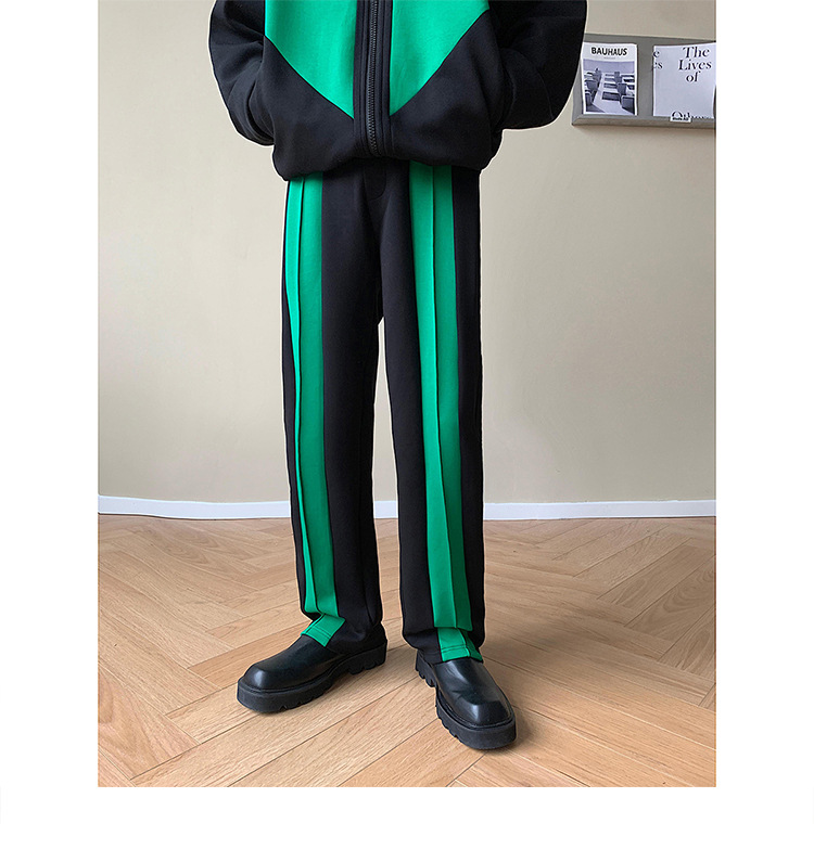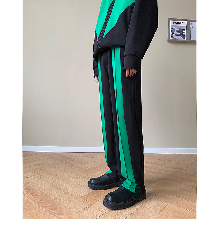 Men's And Women's Fashion Retro Color Blocking Straight Sweatpants
