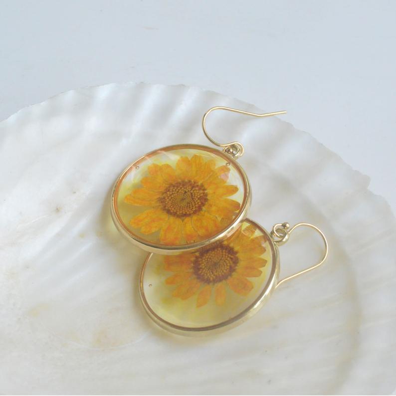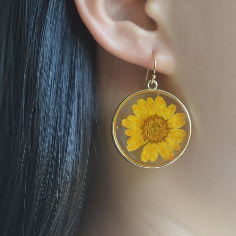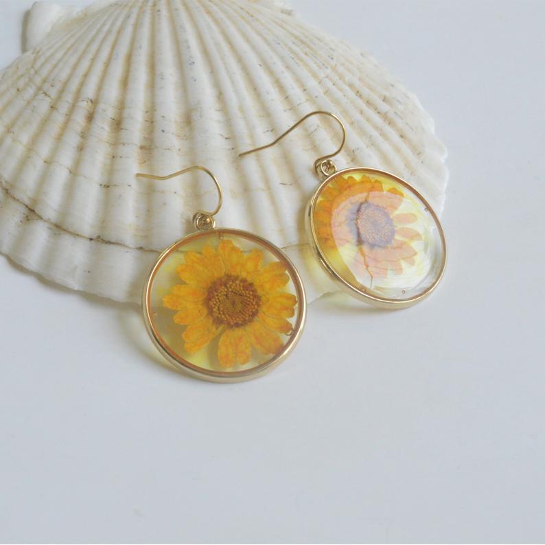 Product Name: Wrinkled Chrysanthemum Flower Geometric Earrings Creative Retro Sunflower Epoxy Stud EarringsMaterial: glassSize: 2.5cmWeight: 8g