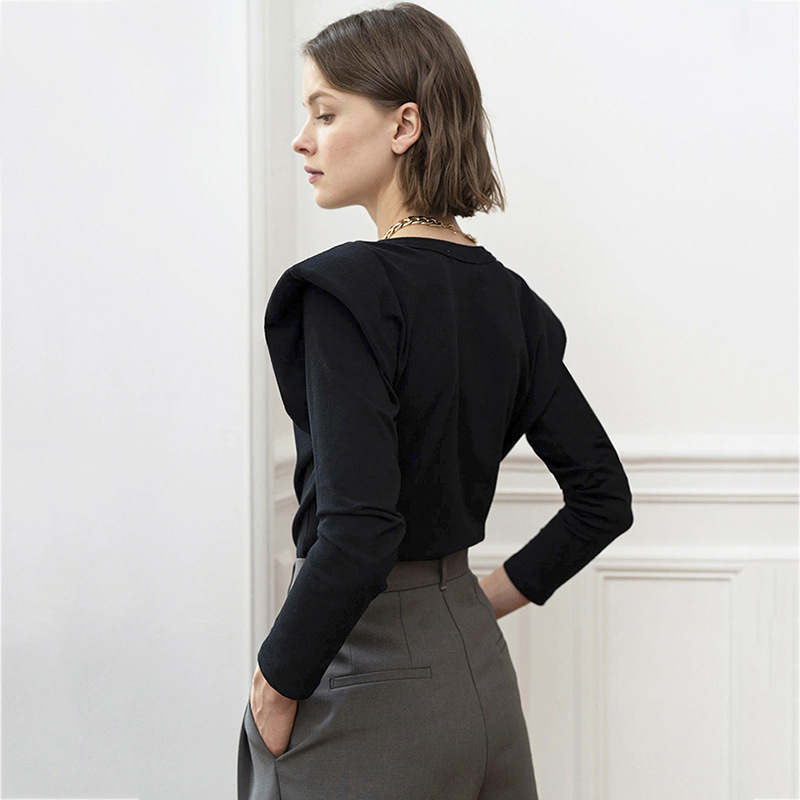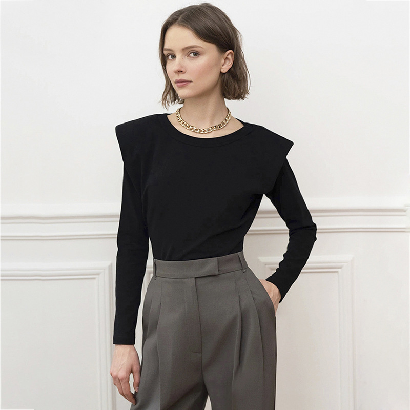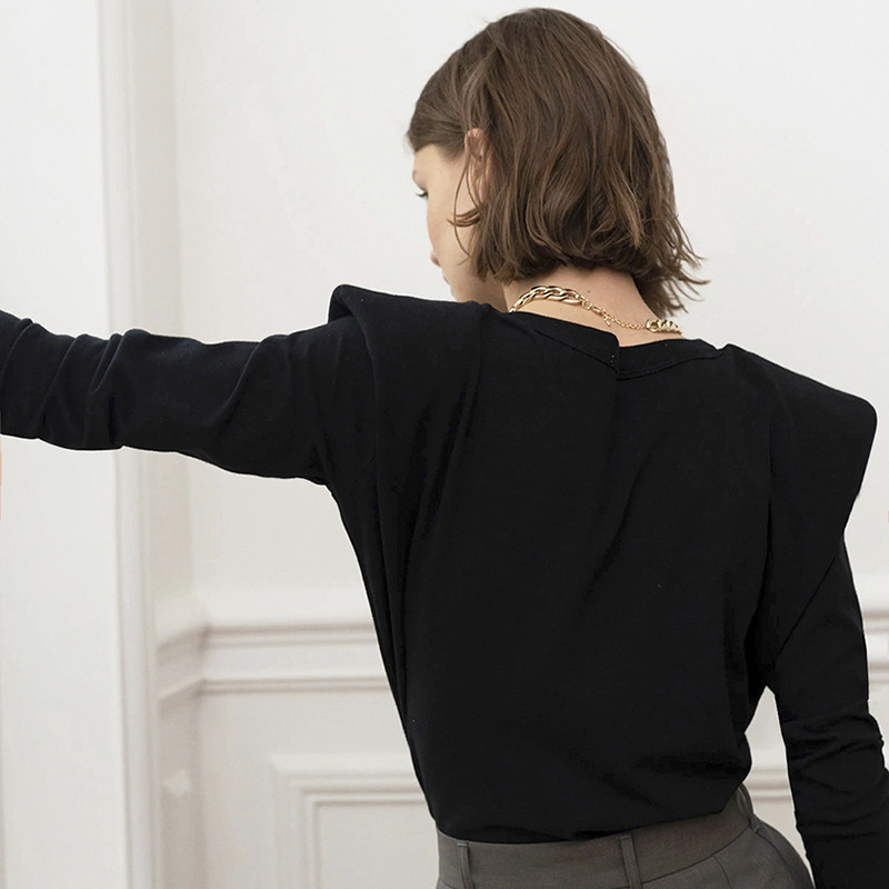 Popular elements: stitching, solid color, shoulder pads, long sleeves