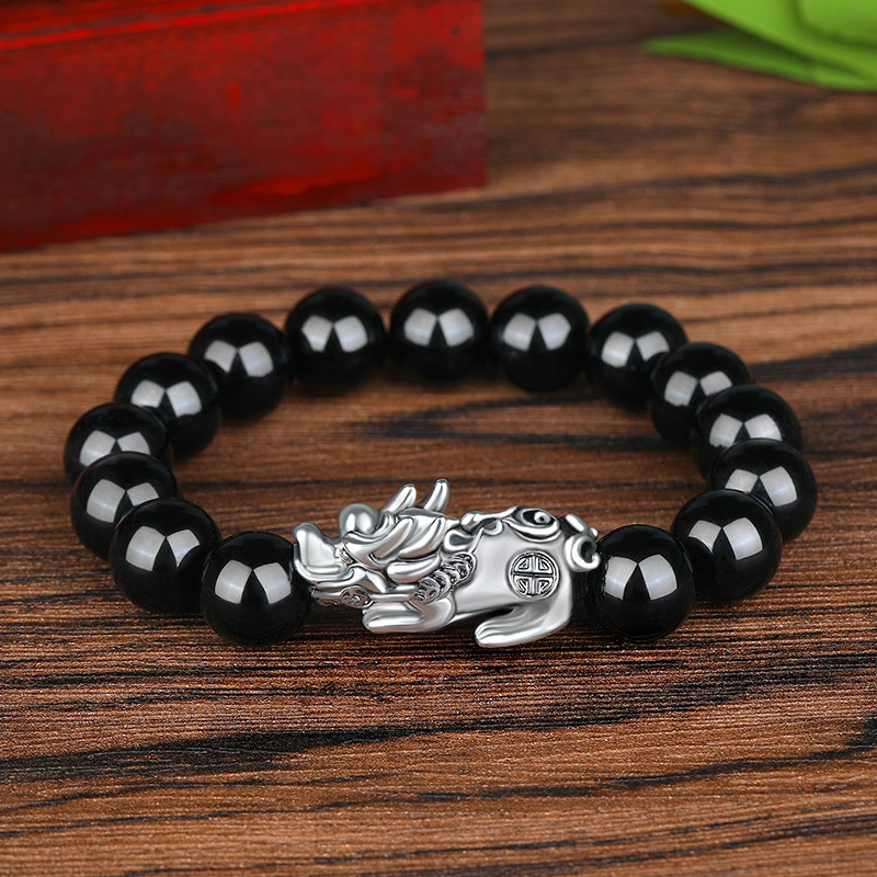 A: Thai Silver-Bafang Lai Cai (12mm obsidian + large brave)