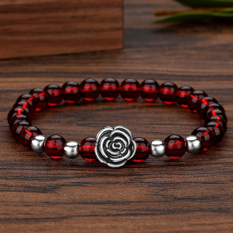 M: Thai silver-flower face and moon look female 8mm red agate + small Pixiu