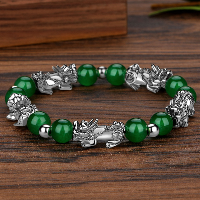 N: Thai Silver-Allure 8mm Green Agate+Small Pixiu