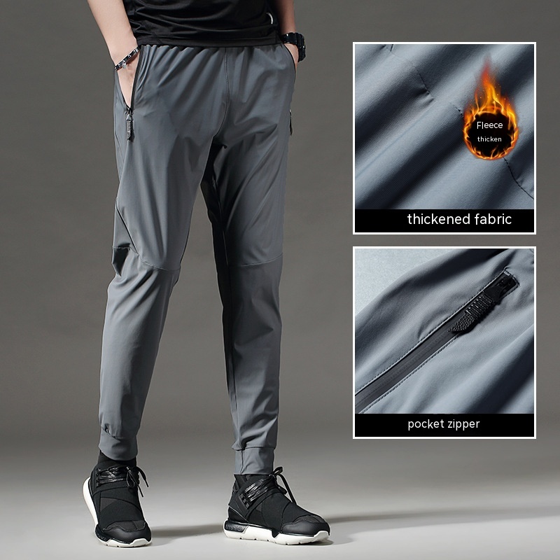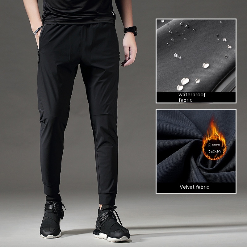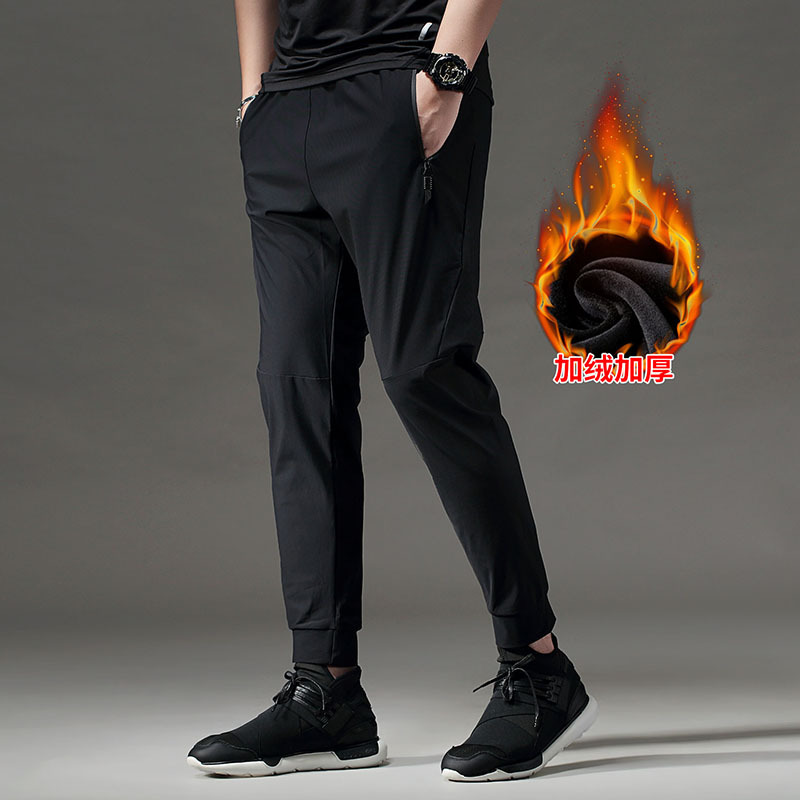 Style: casual, sports and leisure, elastic, skinny pants, anti-exposure, slim fit, fleece-lined