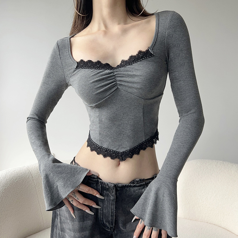 Popular elements: lace contrast color pleated irregular