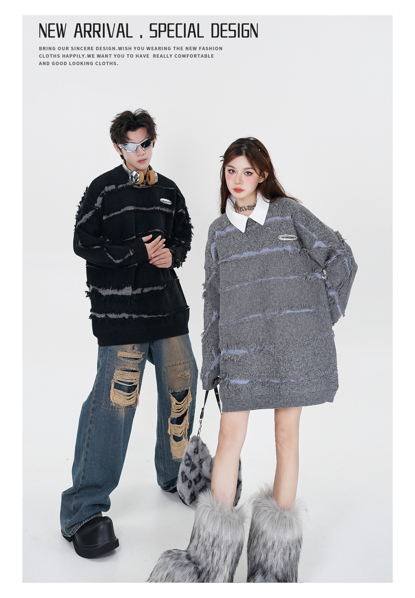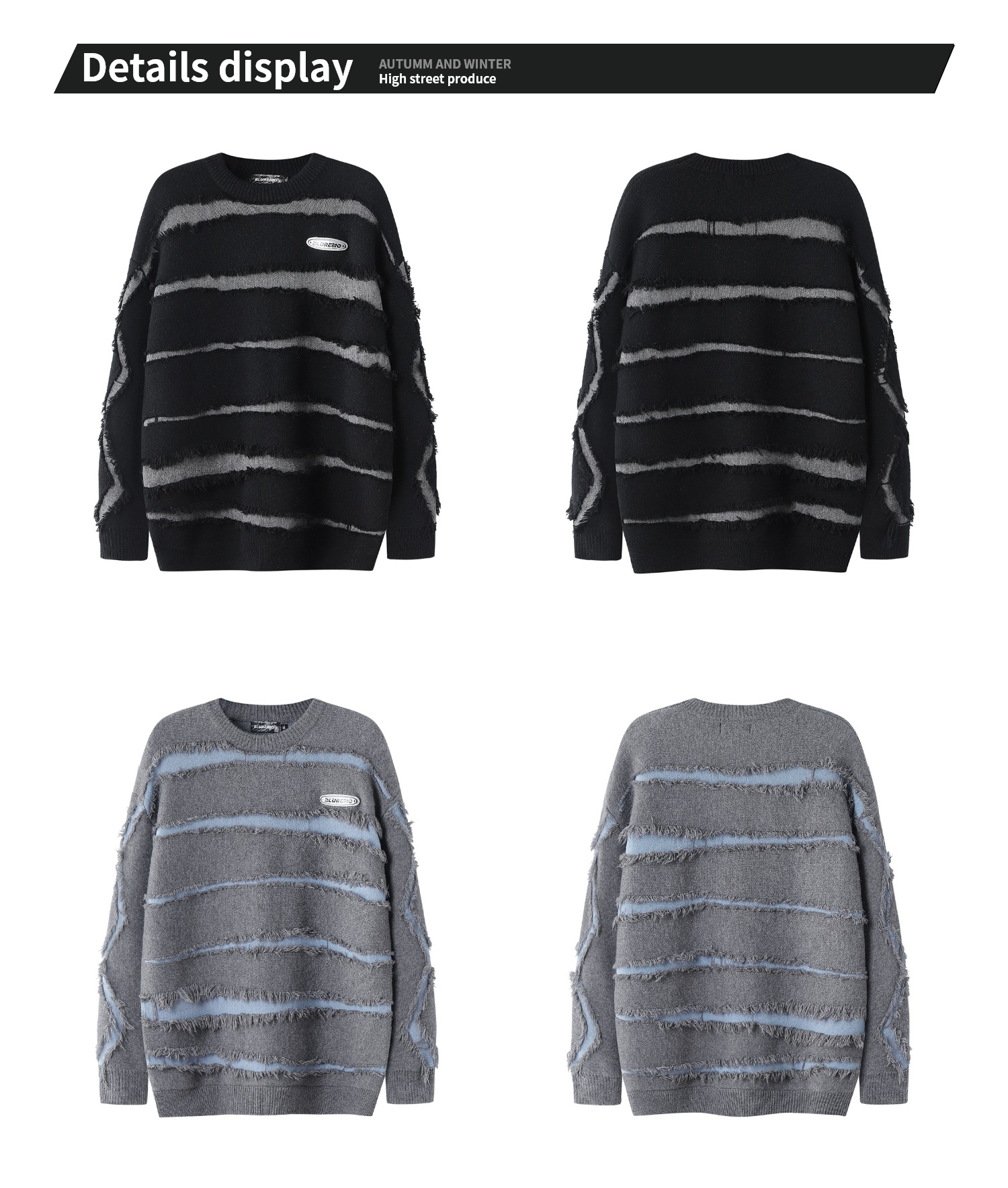 Product information: Color: black, gray Size: M,L,XL,XXL Style: pullover Fabric name: acrylic Style: street fashion Craft: contrast color