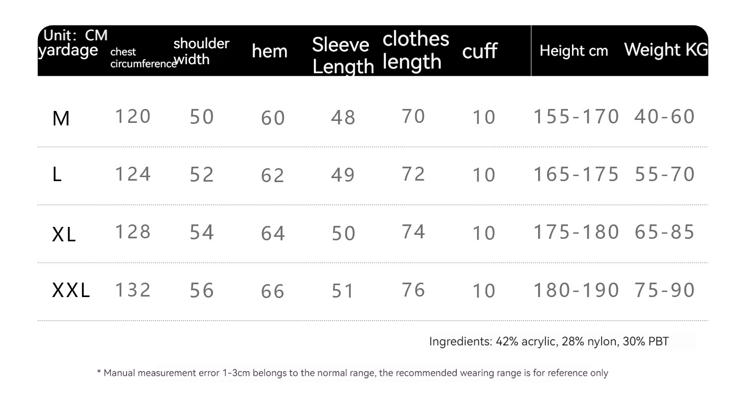 1. Asian sizes are 1 to 2 sizes smaller than European and American people. Choose the larger size if your size between two sizes. Please allow 2-3cm differences due to manual measurement. 2. Please check the size chart carefully before you buy the item, if you don't know how to choose size, please contact our customer service. 3.As you know, the different computers display colors differently, the color of the actual item may vary slightly from the following images.