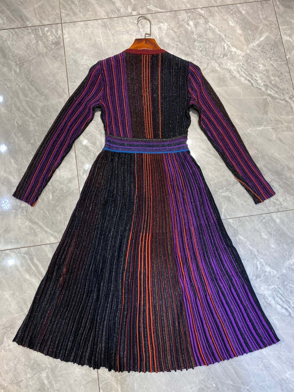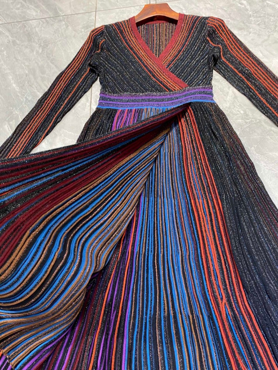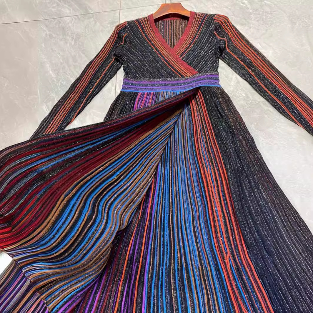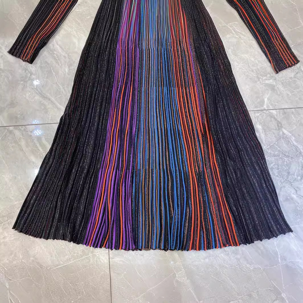 Product information:Pattern: Rainbow stripes Color: Picture color Waist type: high waist Size: S,M,L,XL Sleeve type: regular sleeve Main fabric composition: Wool Sleeve length: long sleeve Skirt Category: Dress