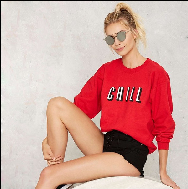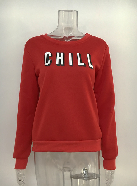 Letter printed loose round neck long sleeve women's sweater