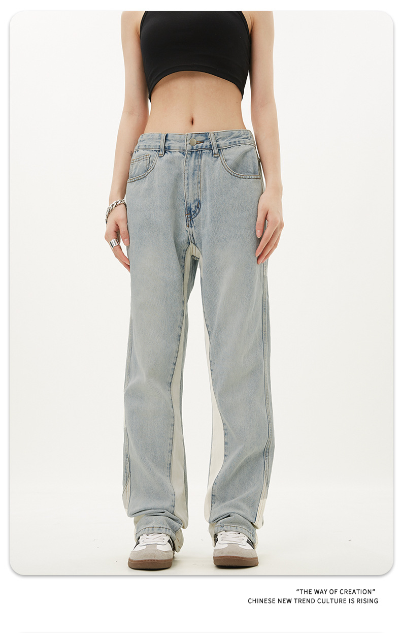 Product information: Color: blue K8828-1 Size: S,M,L,XL,XXL Style: straight-leg pants Fabric name: Cotton Inventory Type: entire transaction Style: High Street Process: non-ironing Leg opening style: Straight