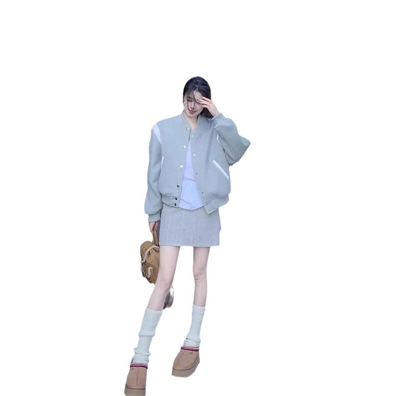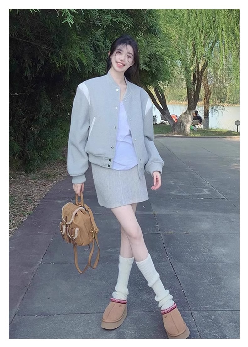 Color: splice of gray and white color blocking baseball uniform thin, splice of gray and white color blocking baseball uniform fleece-lined
