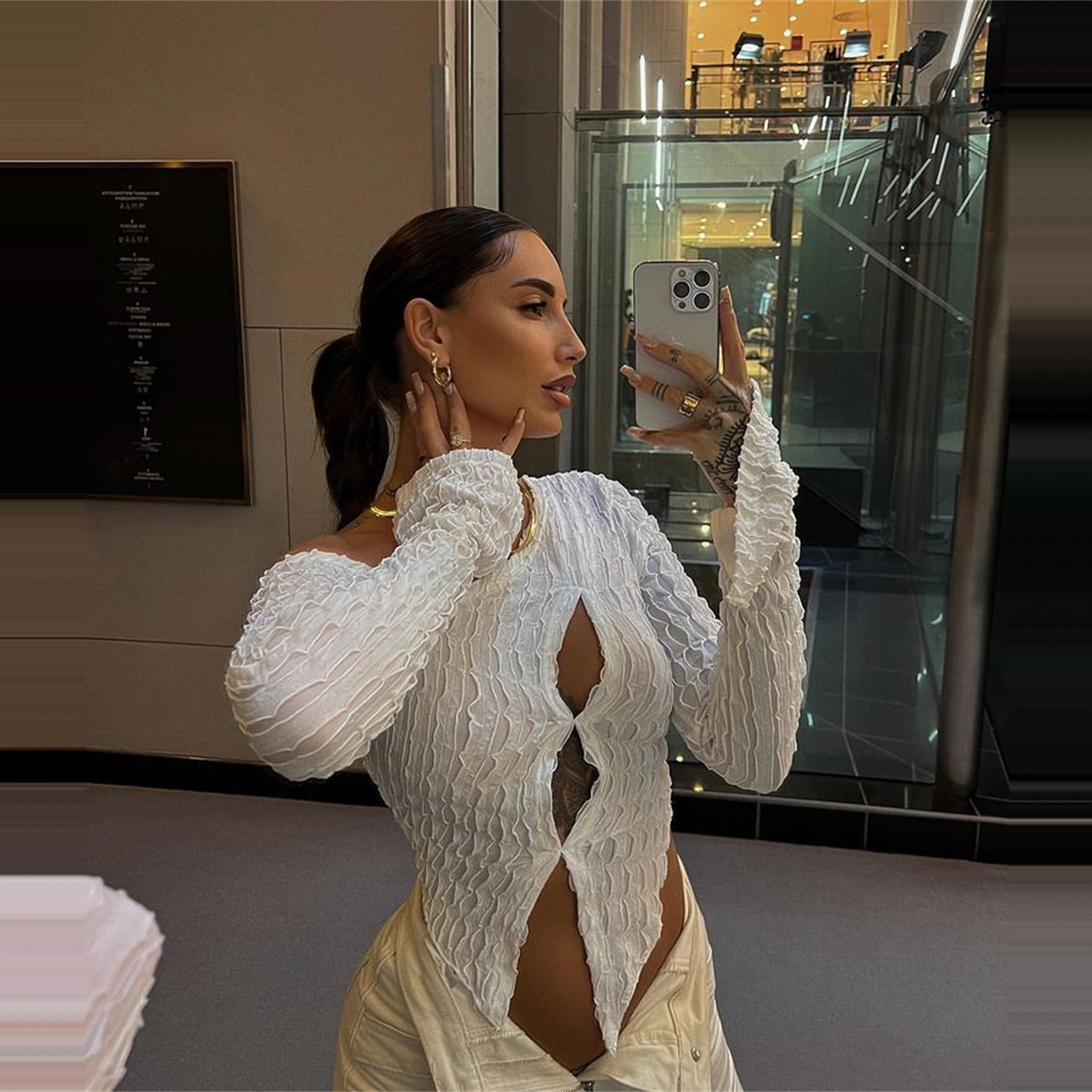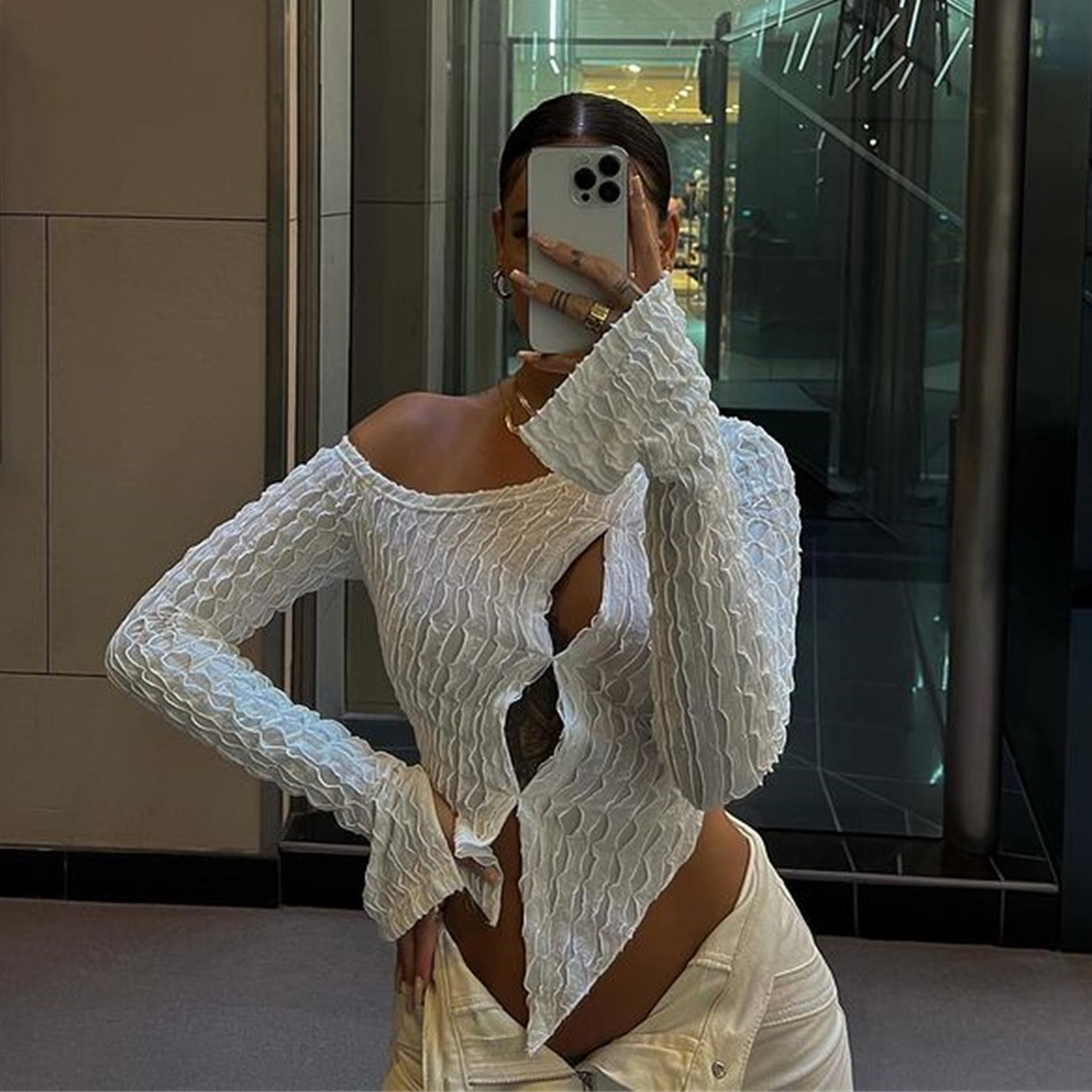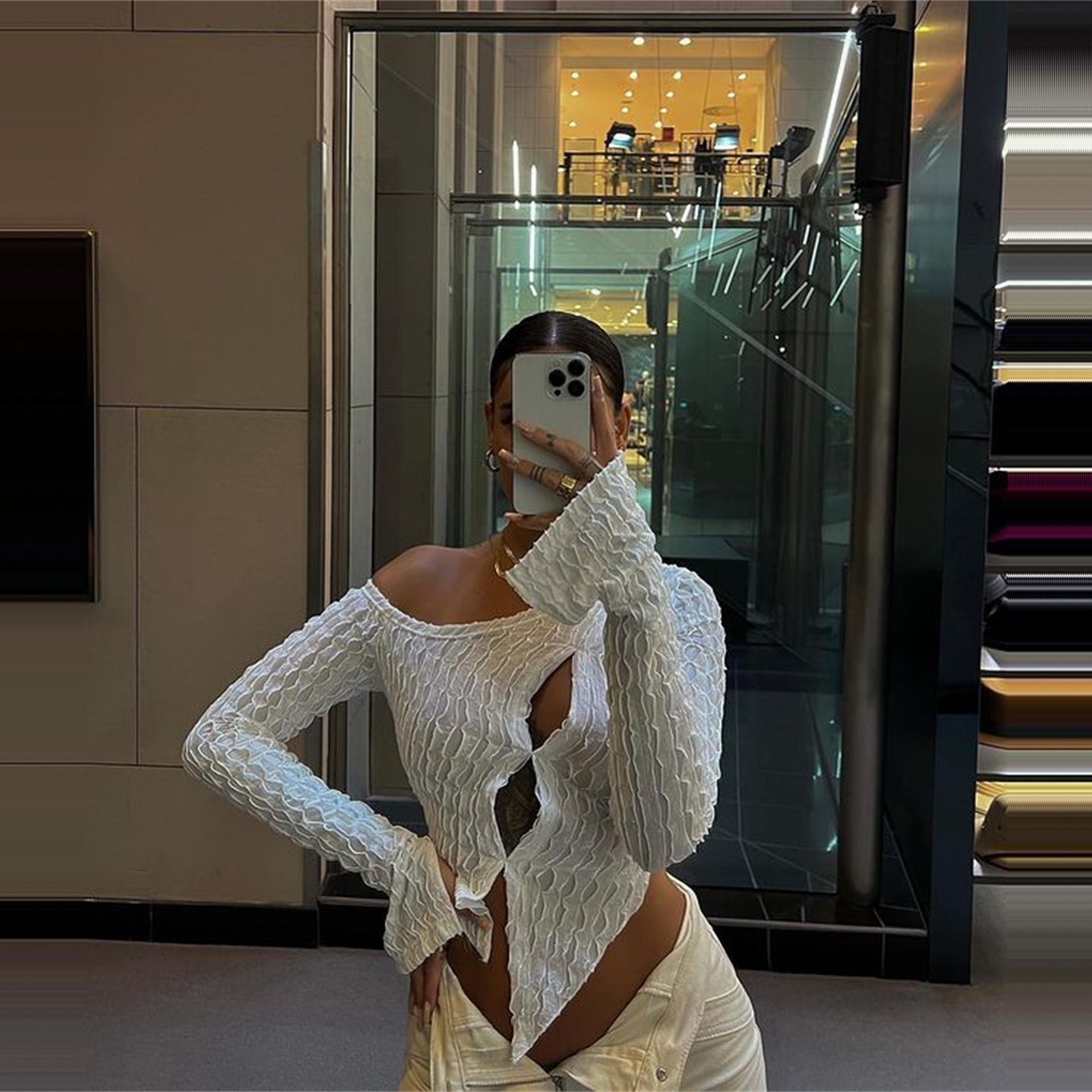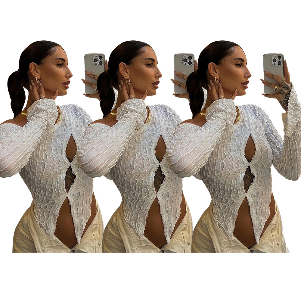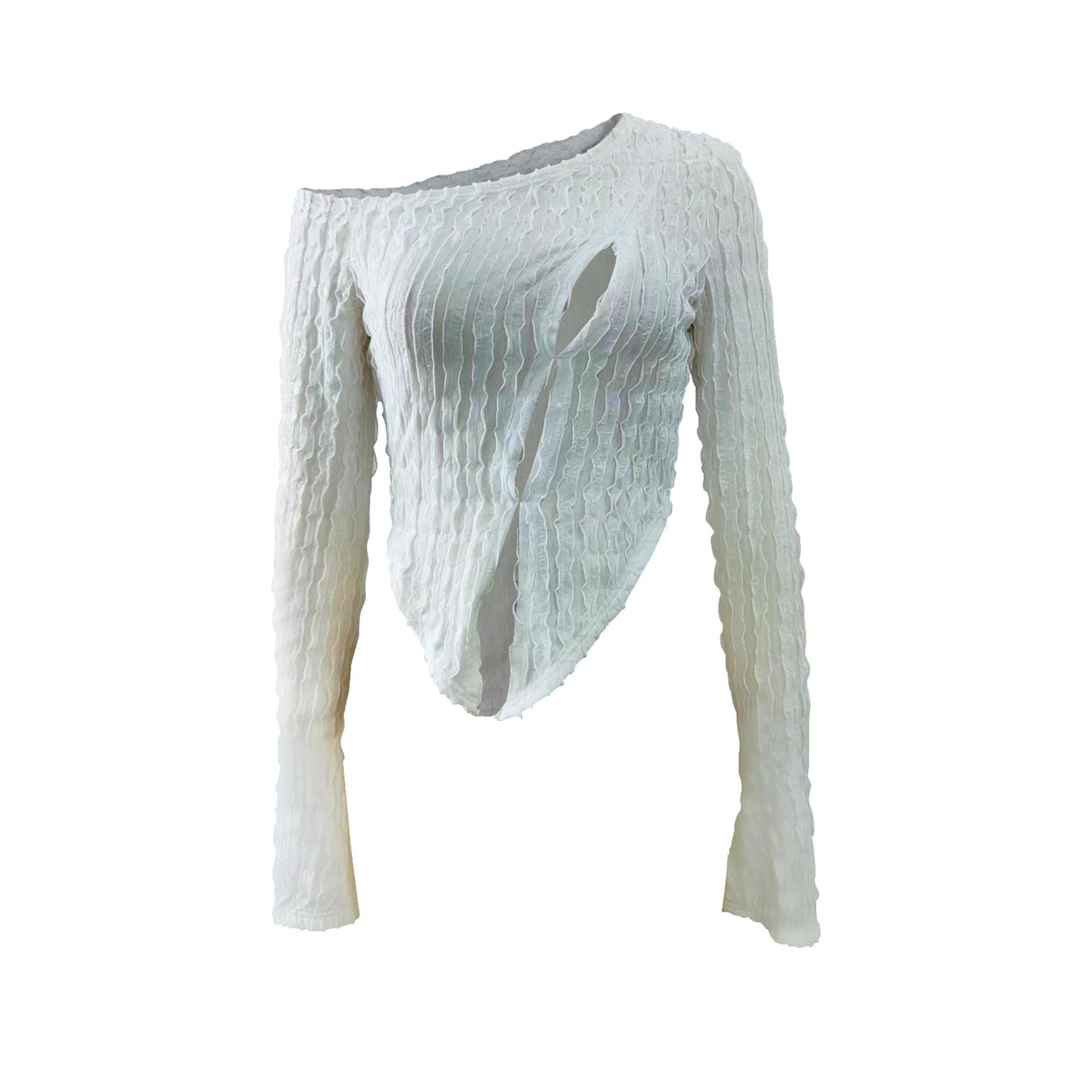 Product information: Color: White Size: S,M,L,XL Style: slim fit Fabric name: Polyester Sleeve length: long sleeve Style: European and American Process: Hollow