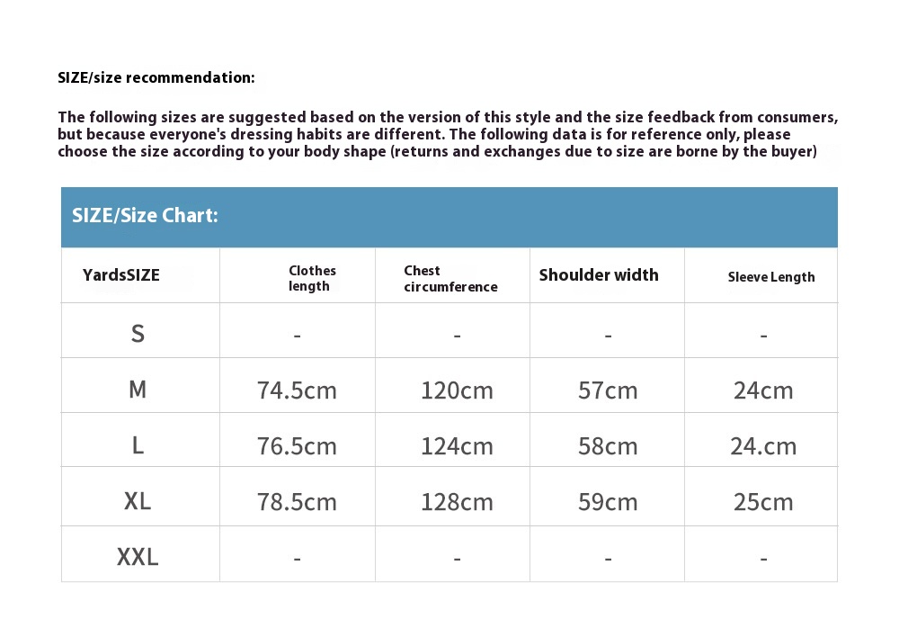 1. Asian sizes are 1 to 2 sizes smaller than European and American people. Choose the larger size if your size between two sizes. Please allow 2-3cm differences due to manual measurement. 2. Please check the size chart carefully before you buy the item, if you don't know how to choose size, please contact our customer service. 3.As you know, the different computers display colors differently, the color of the actual item may vary slightly from the following images.