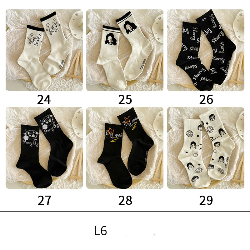 Blue Planet Socks Women's Medium Stockings Cotton Autumn/Winter INS Tidal Korea Lovely Japanese Cartoon Student Stockings Thickness