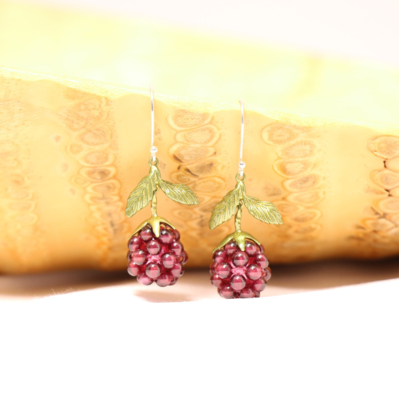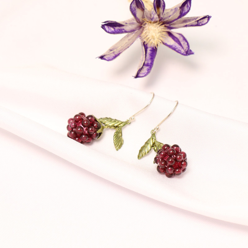 Retro Sweet Exquisite Hand-woven Fruit Garnet 925 Silver Hook Earrings